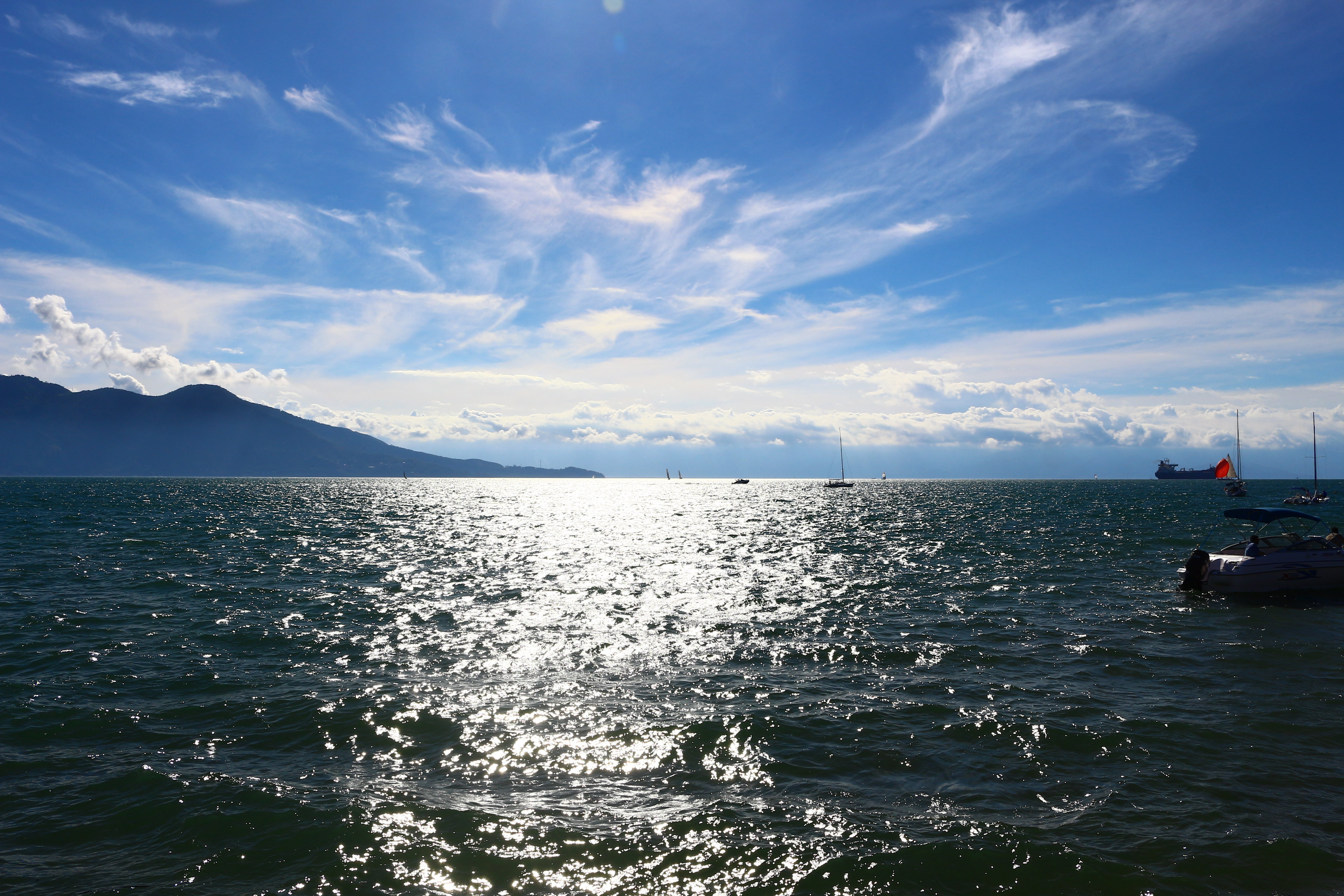O comandante constatou a duras penas que, realmente o diesel S10 comprado num posto em Antonina, estava batizado e assim a viagem não rendeu, além de ter gasto muito mais diesel, levou muito mais tempo em relação ao que havíamos feito nas viagens anteriores. Fazíamos entre 30 e 33 horas tocando direto, agora fizemos em 38 horas. Chegamos em Ilhabela as 21:30 horas e fomos até a marina pública, com muitas poitas, sendo até difícil achar um lugar onde jogar o ferro, pois pareceria um campo minado de bóias. Jantamos e dormimos profundamente.