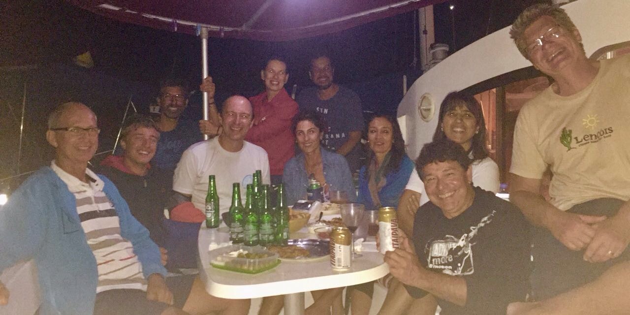 Segunda-feira, começando a semana com um happy our de velejadores que moram a bordo, combinado pelo Denilson, um paranaense que reside aqui em Paraty. O encontro foi no Saco do Bom Jardim e os navegadores do Sul estavam em grande número. Fundeamos com os veleiros Vela e Aventura, do Denilson; o catamarã Lumina, do Pieter e da Dora, que nos receberam e foram ótimos anfitriões; o veleiro Acauã, do Weber e da Miriam; o Andante, do Fernando e da Paula; o Zefiro, do Got e André; o Beijupirá, do Claudio e Priscila; o Ônix do Jack e Angelita e outros mais que animaram a noite.