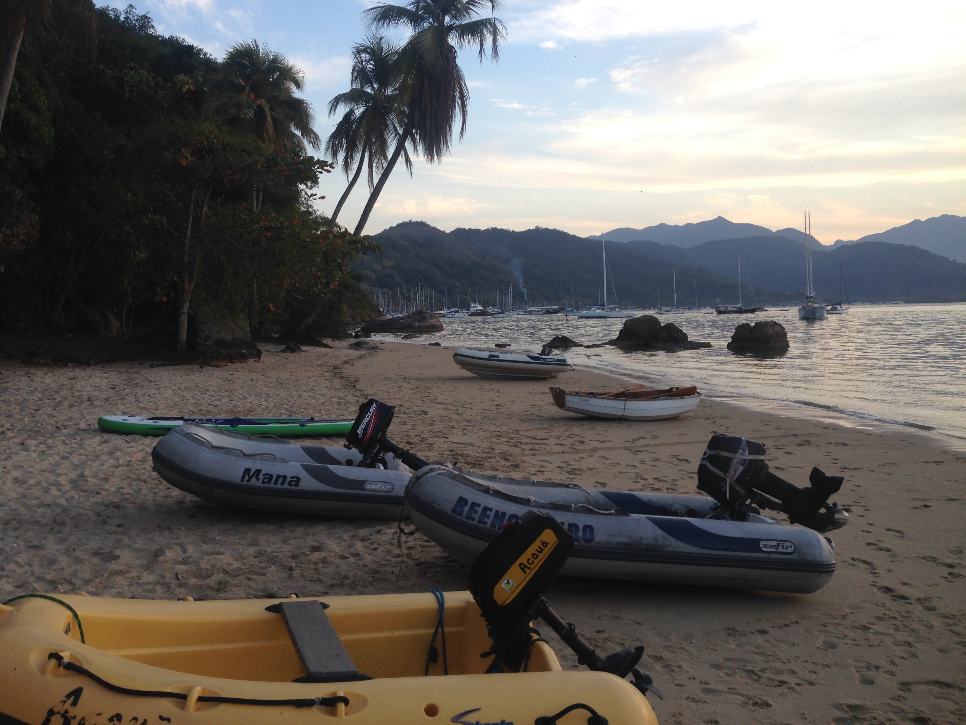 Esta prainha, a primeira passando as marinas de Paraty, é um ponto de referência dos velejadores aqui em Paraty, RJ, principalmente daqueles, como a gente, que ficam fundeados. Ela oferece água doce, uma bela praia para tomar sol, praticar atividades físicas e encontrar amigos. Dias atrás quando fundeamos aqui haviam poucos veleiros, hoje já estamos com mais de dez veleiros e aos poucos vamos conhecendo e nos integrando com cada um deles. A arte da convivência é uma sabedoria. Compartilhar bons momentos e respeitar sempre o espaço do outro é o que procuramos fazer sempre.
