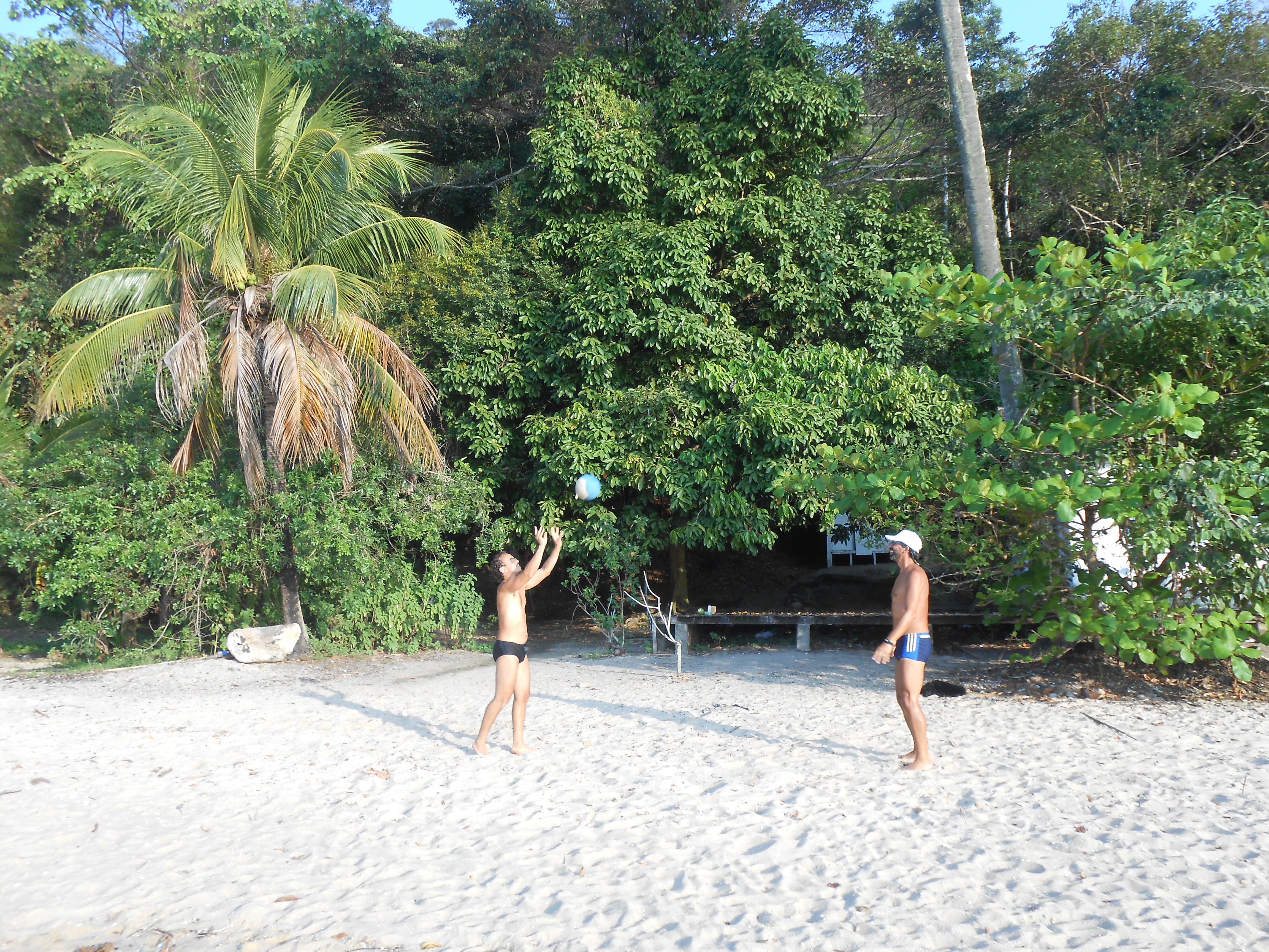 Estamos na Prainha do Cantagalo há duas semanas, aguardando a chegada da peça do guincho elétrico para substituir. Neste período aproveitamos muito a companhia do pessoal que fica aqui na prainha e dos amigos que ficam aqui próximos nas Marina, para os vários churrascos e jogos de vôlei no fim do dia.