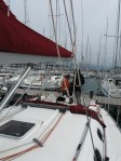 Manhã seguinte fomos ver um Gib Sea, 43 pés, mas não gostamos… barco com o essencial em funcionamento, mas com muitos detalhes a serem reparados, principalmente no tocante a fibra do convés.