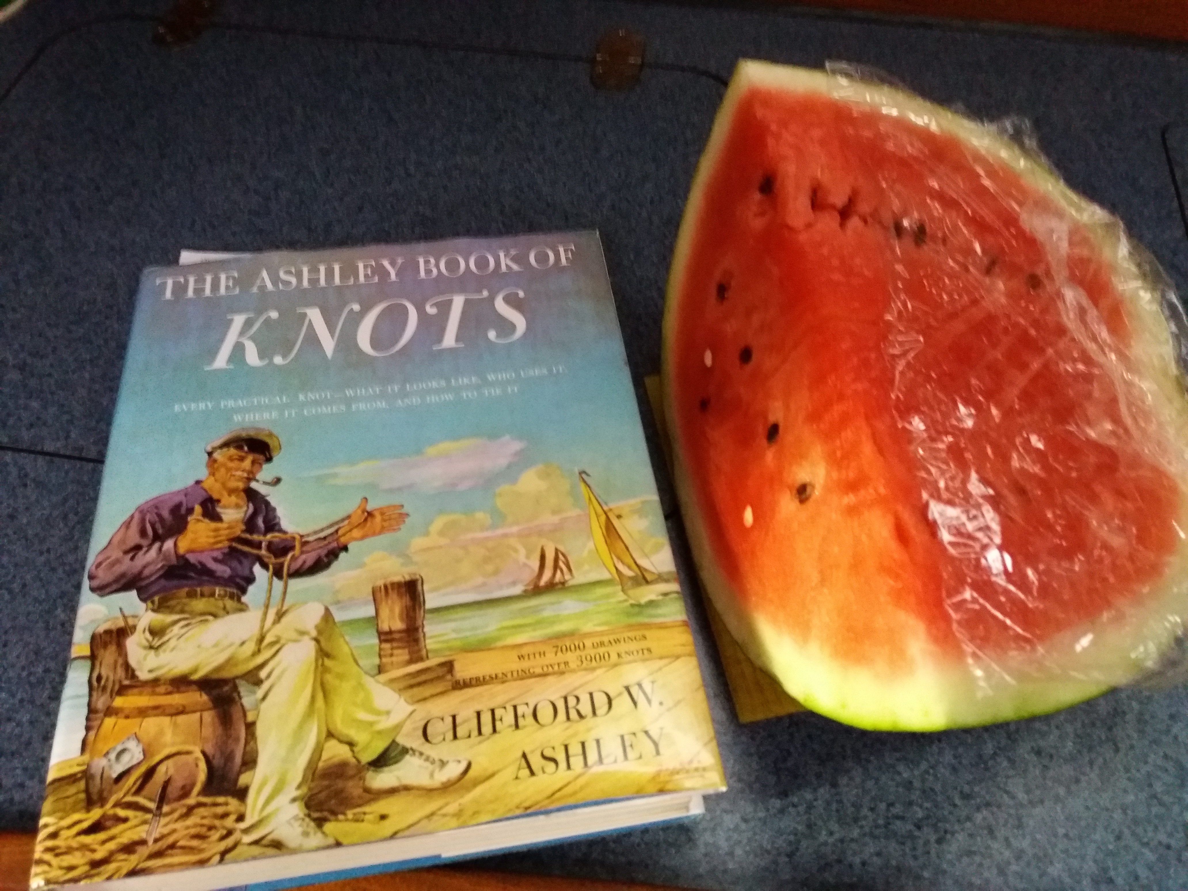 Dia 08 de julho e permanecemos ainda em Kotor aproveitando a ancoragem em frente a cidade e sem custo (42o25.412’N / 18o45.975’E). Na madrugada entrou vento e o Renato ficou no cockpit acompanhando e observando os barcos ancorados próximos. A previsão para estes dias é de entrada de um pouco de vento e assim o Comandante permanece em alerta. No dia seguinte saímos para andar e ao retornar encontramos um mimo: um quarto de uma deliciosa melancia e um livro de Nós de Marinharia, que o Jordan e a Judy gentilmente nos emprestaram. Mais tarde nos reunimos com eles e o Jordan fez um trançado formando um laço em nosso cabo do gancho de ancora, ficou uma beleza, ficamos todos no cockpit acompanhando a execução! Levamos conosco seu valioso trabalho e na quarta, dia 11, eles se foram, rumo a Croácia e deu um aperto no coração ❤️.