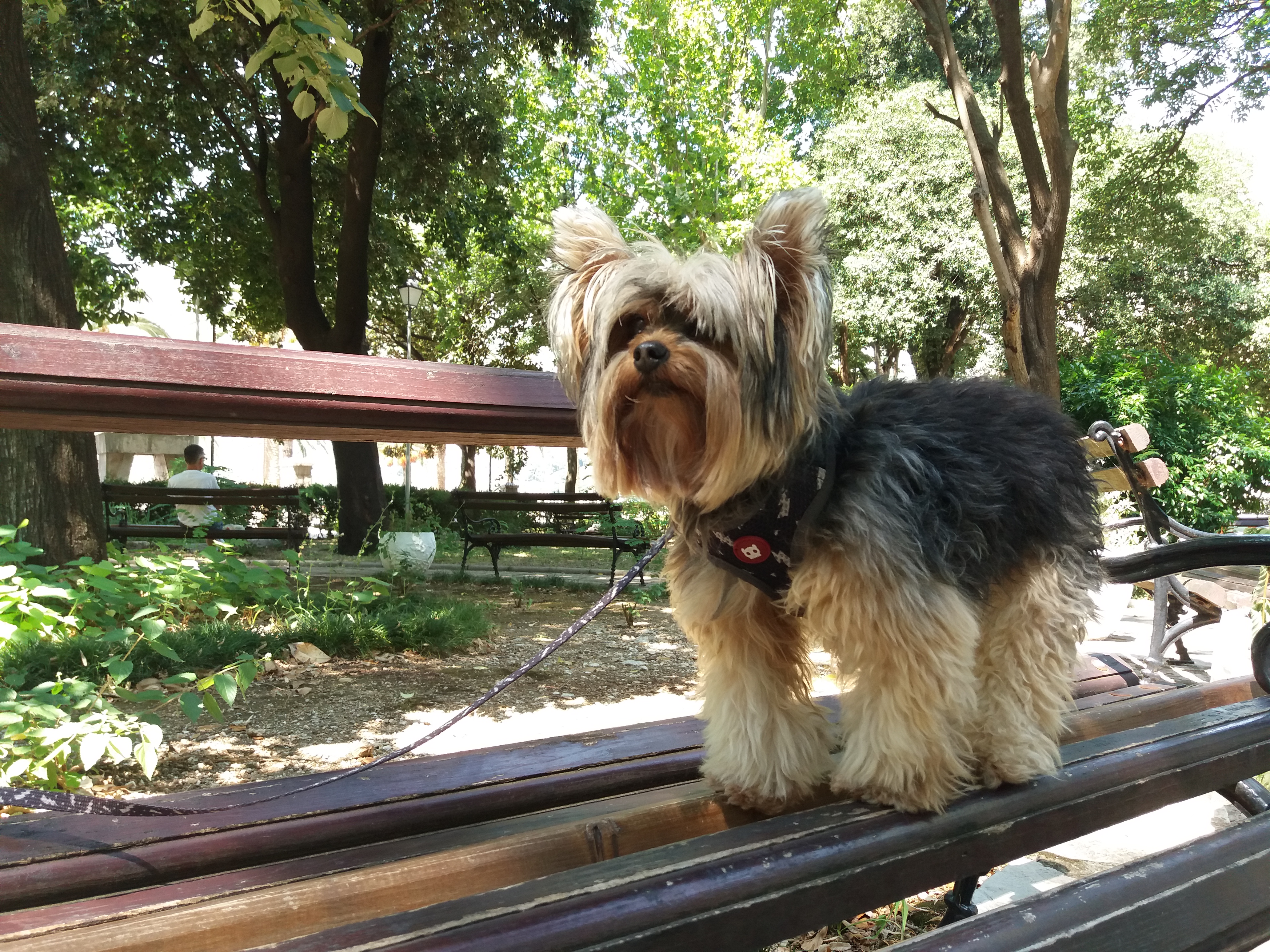 A Bella tem sofrido um pouco com o calor e então procuramos passear com ela quando o sol está mais fraco de modo que ela possa fazer uma boa caminhada diária.