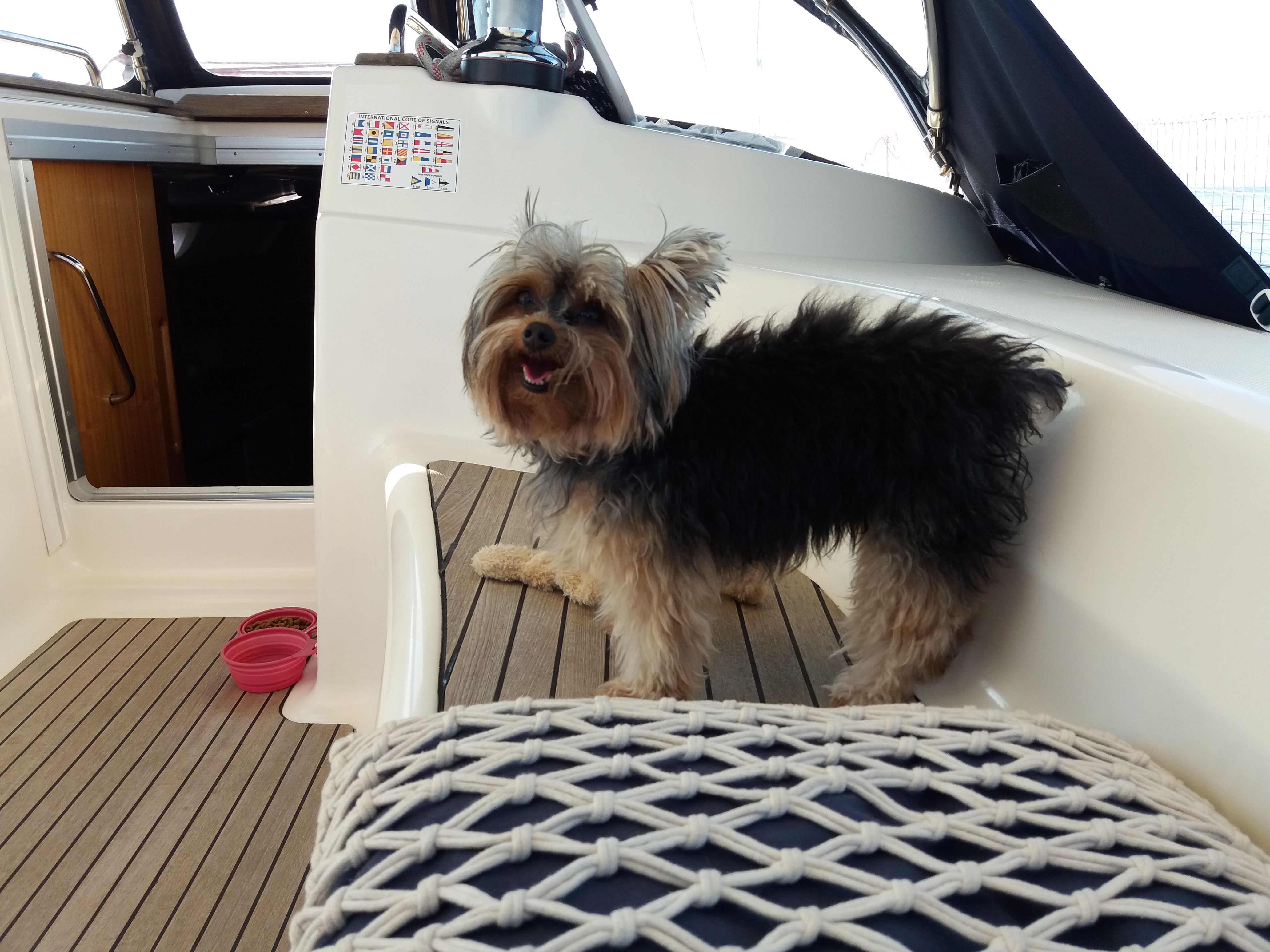 que está sempre com seu nariz ao vento e alerta, latindo quando alguém passa próximo da Pharea, seja nadando, no bote, no stand up ou até outro veleiro ou lancha passando mais perto do que a distância que ela considera “o limite” 😀🐾😀🐾. Namastê 🙏🏼.