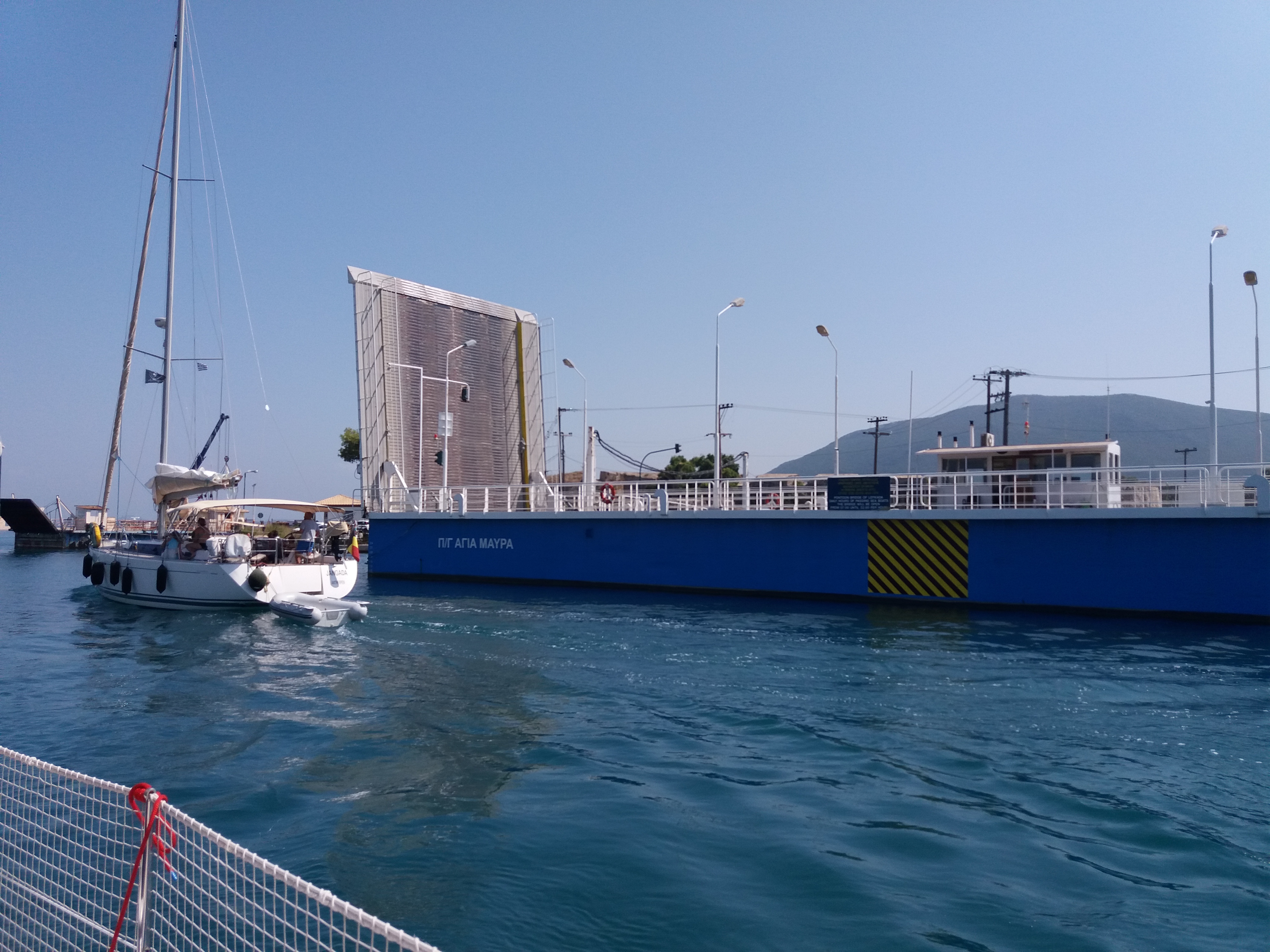 Dia 01 de setembro, deixamos cedinho a ancoragem de Antipaxos e rumamos para a Ilha de Lefkas ainda em direção ao sul, onde passaremos por um canal, margeado por duas fazendas marinhas e uma grande marina.