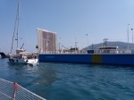 Passamos a ponte, seguindo o canal passamos pela grande Marina de Lefkas, pier muito organizados e com grande áreas de manobra e logo na sequência, sentimos um forte odor e vimos que estávamos passando por um lixão (não dá para chamar de aterro sanitário) e mais adiante saímos do canal e como a água ainda estava turva, prosseguimos a procura de um ponto de ancoragem. Paramos numa baía com praias, Marinas, ferry boat e táxi boat mas com muita profundidade e decidimos por seguir em frente e procurar outro local mais adequado e com menos muvuca.