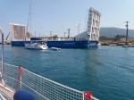 As 12 horas, soaram 2 apitos breves e um terceiro bem longo e a ponte começou a se movimentar. Primeiro subiu uma lateral e depois girou 90 graus abrindo o caminho para os veleiros passarem, nos dois sentidos… muito bacana estavamos na expectativa para saber como era a passagem….