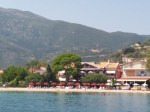 Ancoramos numa enseada em frente a uma bonita vila chamada South Bay (38°38.307’N / 20°41.892’E com 10 m), com belas casas no alto da montanha, e uma prainha cheia de guarda sóis, descemos de bote e o deixamos no pier público, andamos na rua da praia e fomos ao mercado, tudo isso com a Bellinha que já estava a um dia sem sair para sua caminhada e corrida atrás de pássaros e lagartinhos verdes.