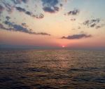 Nesta manhã apreciamos o nascer do sol numa espetacular e grande bola laranja… subindo do mar… como a muito tempo não víamos. O mar estava calmo e sem vento, vimos vários peixes voadores, passamos pela linha batimétrica de 200 metros de profundidade e fomos contemplando o mar e a costa, mesmo um pouco encoberta e com baixa visibilidade.