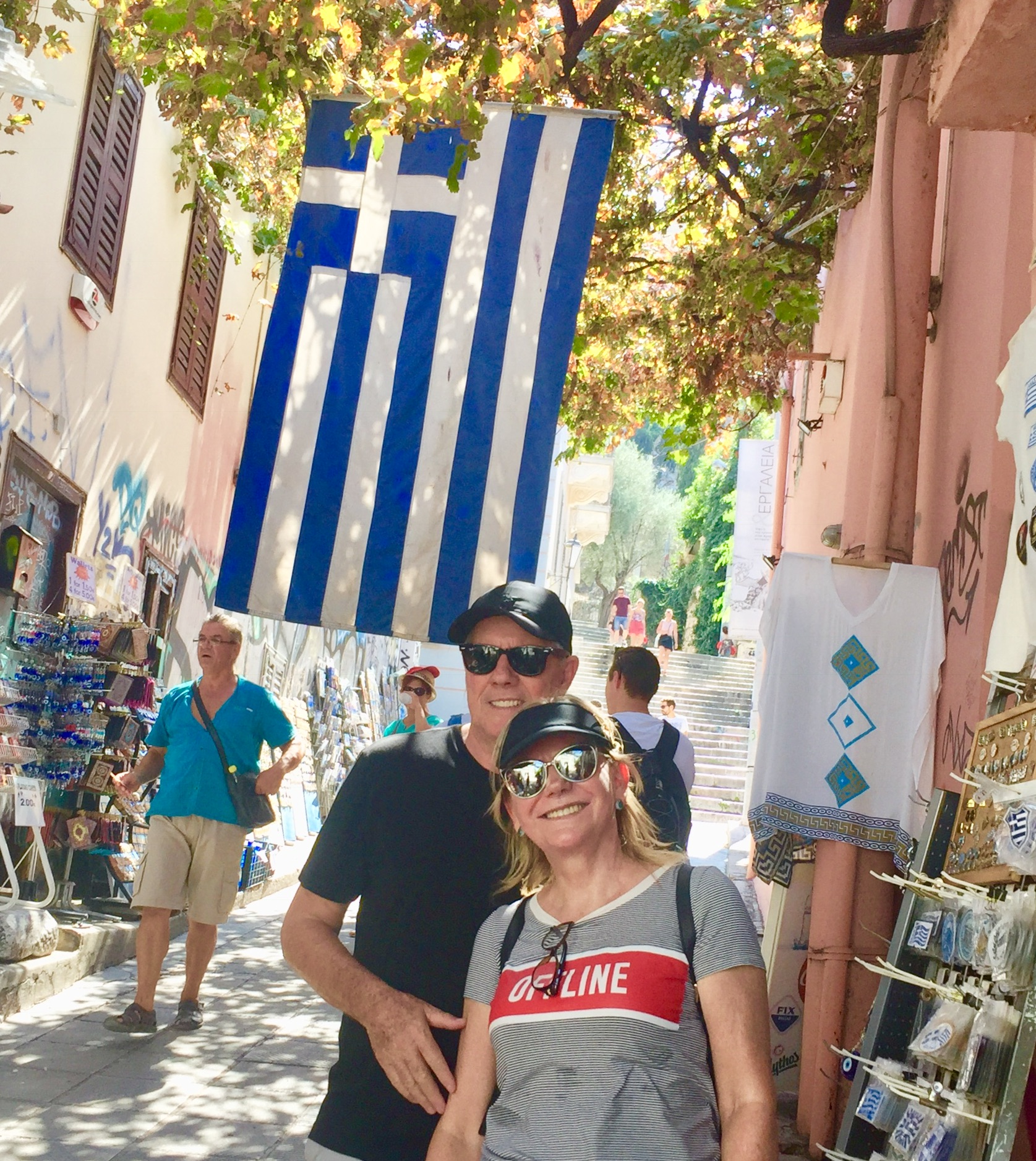 No sábado preparamos as mochilas e fomos para o bairro de Plaka, ficar com nossos convidados, meu irmão Ilson e cunhada Stela e os amigos Pedron e Simone, todos de Sinop-MT. Eles alugaram um apartamento para dois dias, facilitando assim o deslocamento para os pontos turísticos de Atenas.