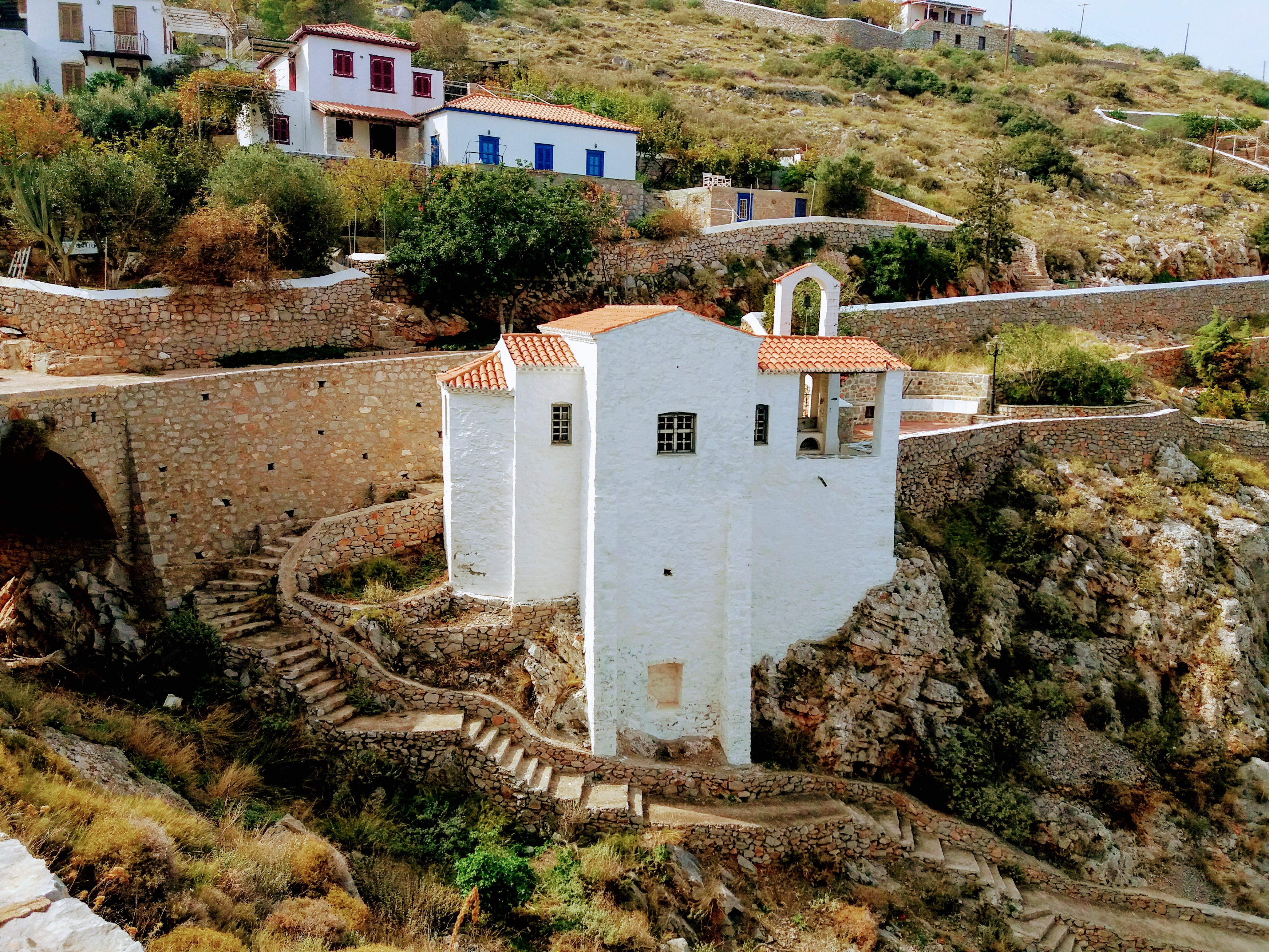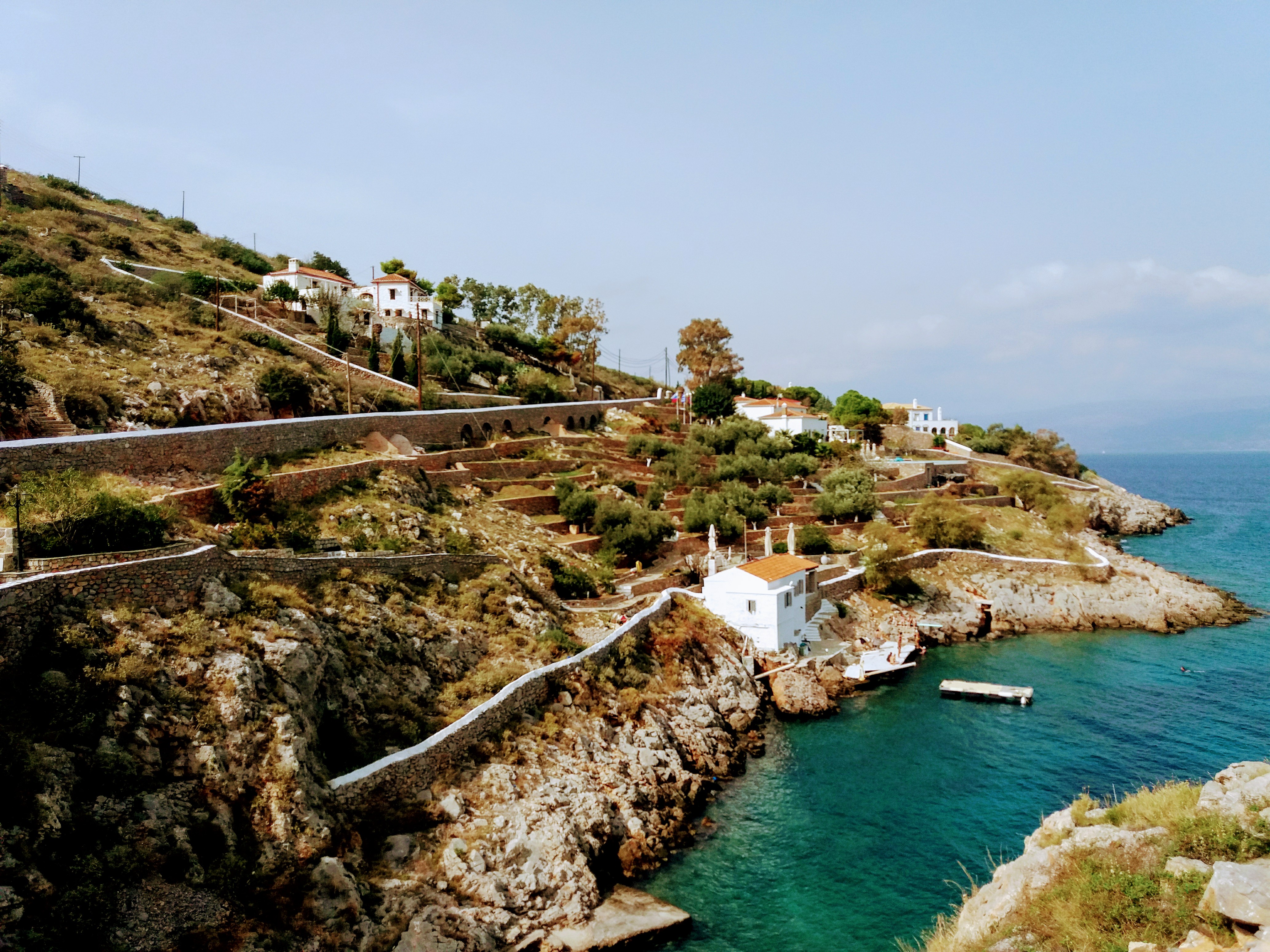 Sexta-feira (19/10/18) levantamos ancora e rumamos mais ao sul do Golfo Sarônico, para a Ilha Ydra. Ancoramos numa enseada próxima chamada Mandraki ( 37°21.229’N / 23°29.036’E) e neste lado da ilha somente algumas casas e montanha rochosa, para ir até a cidade fizemos uma trilha de uns 30 minutos.