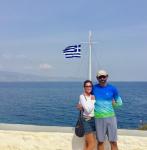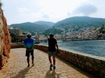 Fizemos a caminhada até a cidade, numa estradinha contornando a montanha e ao chegar numa curva…avistamos o Porto e uma bela cidade, surpreendendo nossa expectativa. Muitos turistas turistando por lá e no Porto uma pequena marina já bem cheia. Sentamos em um dos restaurantes à beira do píer e passamos um bom tempo conversando e apreciando a paisagem, tomando um vinho grego 🍷