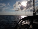 O vento pela manhã estava em torno de 10 a 15 knots e a tarde aumentou, assim como a ondulação de alheta que durou um bom tempo e só a noite o mar acalmou e pela primeira vez o Renato comandou o barco da mesa de navegação, acompanhando o desempenho e o rumo pelos equipamentos internos e vez outra saindo para uma olhadela lá fora.