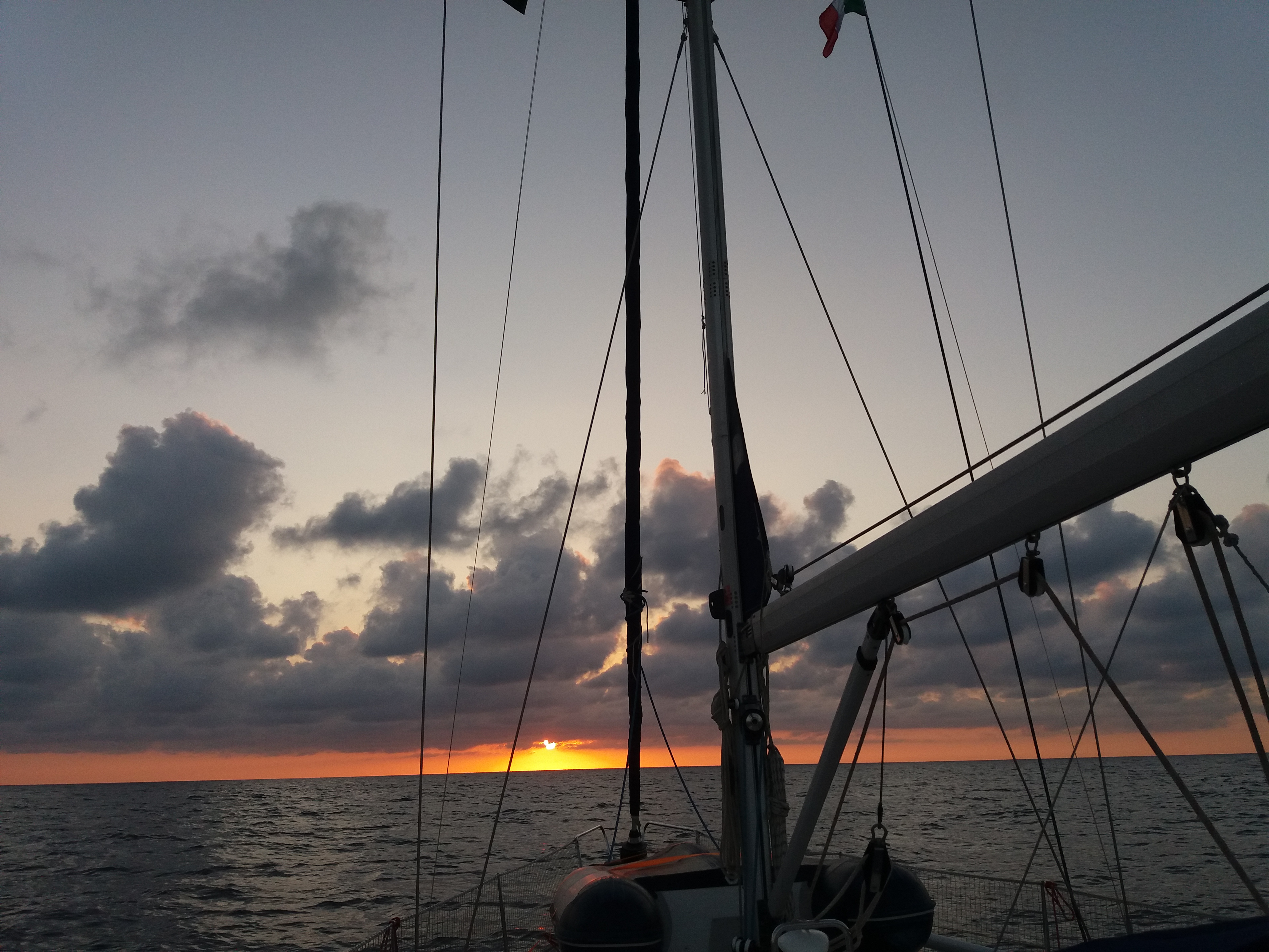 Barco 100% revisado, tudo conferido, bolsa de abandono preparada e assim no dia 8 de novembro deixamos a Grécia 🇬🇷, o Comandante zarpou às 2 da madrugada para a travessia do Mar Jônico, rumo a Itália 🇮🇹, tendo 200 milhas pela frente.
