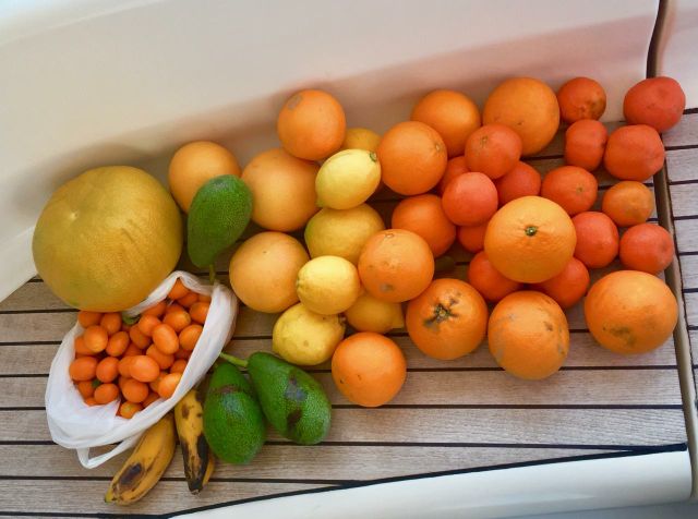 Dia desses a Daniela, uma italiana que conhecemos, que mora aqui próximo e sempre vem andar na Marina, nos trouxe uma sacolada de frutas cítricas… Muitas e eu me arrisquei a preparar uma geleia de laranja e olha que deu muito certo, ficou bem saborosa e fiquei orgulhosa de minha produção.
