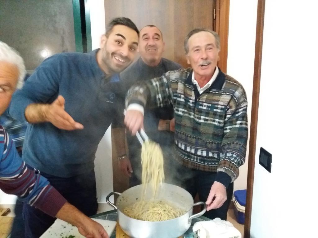 especializados em fazer este típico prato da Calabria e seus acompanhamentos e foi uma grande festa, com muita comida e animação. Sou descendente de italianos, e isso recordou minha infância… Que por vezes um porco era comprado e abatido para se fazer salame e havia também o hábito de cozer a carne em sua própria gordura e guardá-la em latas, o que a mantinha conservada por longo tempo. Mas bom mesmo foi ver a animação da equipe, alguns experientes senhores italianos e reparei que não havia nenhuma mulher no time dos cozinheiros e eles mandaram muito bem 👏🏻👏🏻👏🏻.