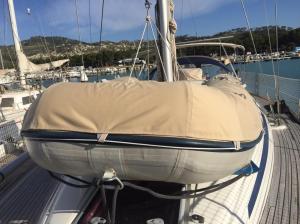 As capas mais difíceis foram as dos estofados externos, que formam um “U” no cockpit e por isso tem muitos cantos arredondados e também a terrível capa do bote, esta sim foi a mais complicada, acertar todas as partes com a curvatura acentuada das bananas não foi fácil. Inicialmente fixaríamos com velcro, depois optamos por prendê-la com um cabo em toda a volta do bote, o que deu muito certo.