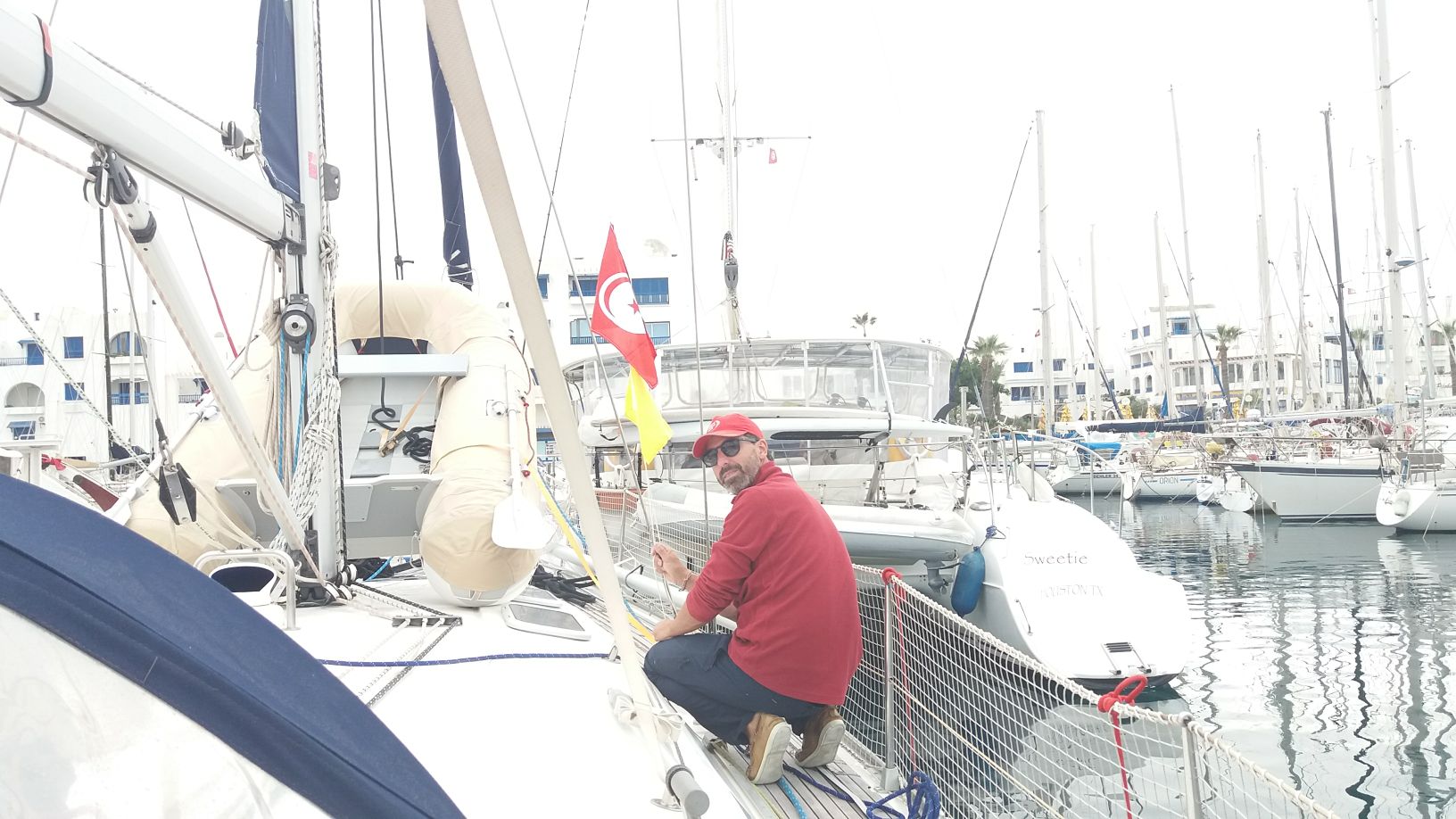 “Enfim, África! Após 49 horas de navegação, chegamos na Tunísia, país onde vamos passar este inverno. Nestas 49 horas, entre Siracusa e Monastir, fomos castigados por um mar duro, com ondas não altas, entre 1 e 1,5 metros, mas totalmente desencontradas e com um período muito curto, o que fazia com que o barco balançasse para todos os lados e fosse impossível “encaixar” o barco entre as ondas.