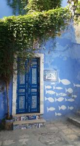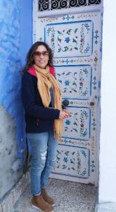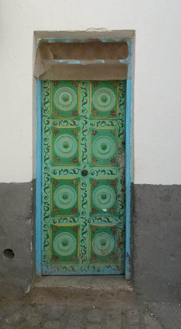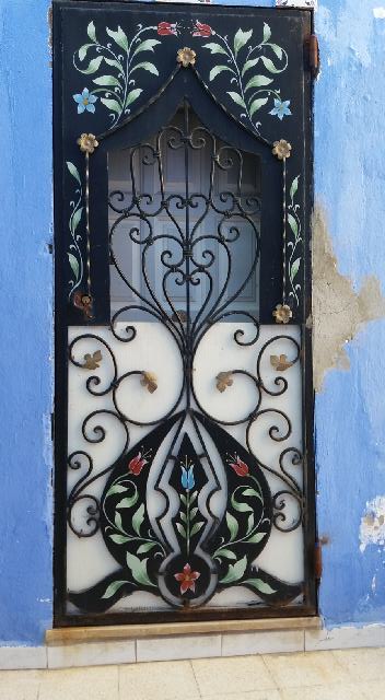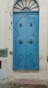 Caminhamos até uma estação onde há vans para todos os destinos próximos. Assim compartilhamos a van com outras pessoas e fomos para Sousse. A ideia era dar uma volta por lá e ir nos mercados ver se havia produtos diferentes, como me disse a Shannon…. “Abacate para mim é como tomate para um italiano”, mas infelizmente lá também não encontramos, nem mesmo no Carrefour, que geralmente tem bastante variedade de produtos importados. Mas além de passarmos um ótimo e divertido dia, fiquei fascinada com as portas das casas. As portas de entrada tem um papel importante na arquitetura tunisiana. Elas são trabalhadas com adornos e cores fortes, enchem os olhos, espantam mal olhado e é o cartão de visita da casa.