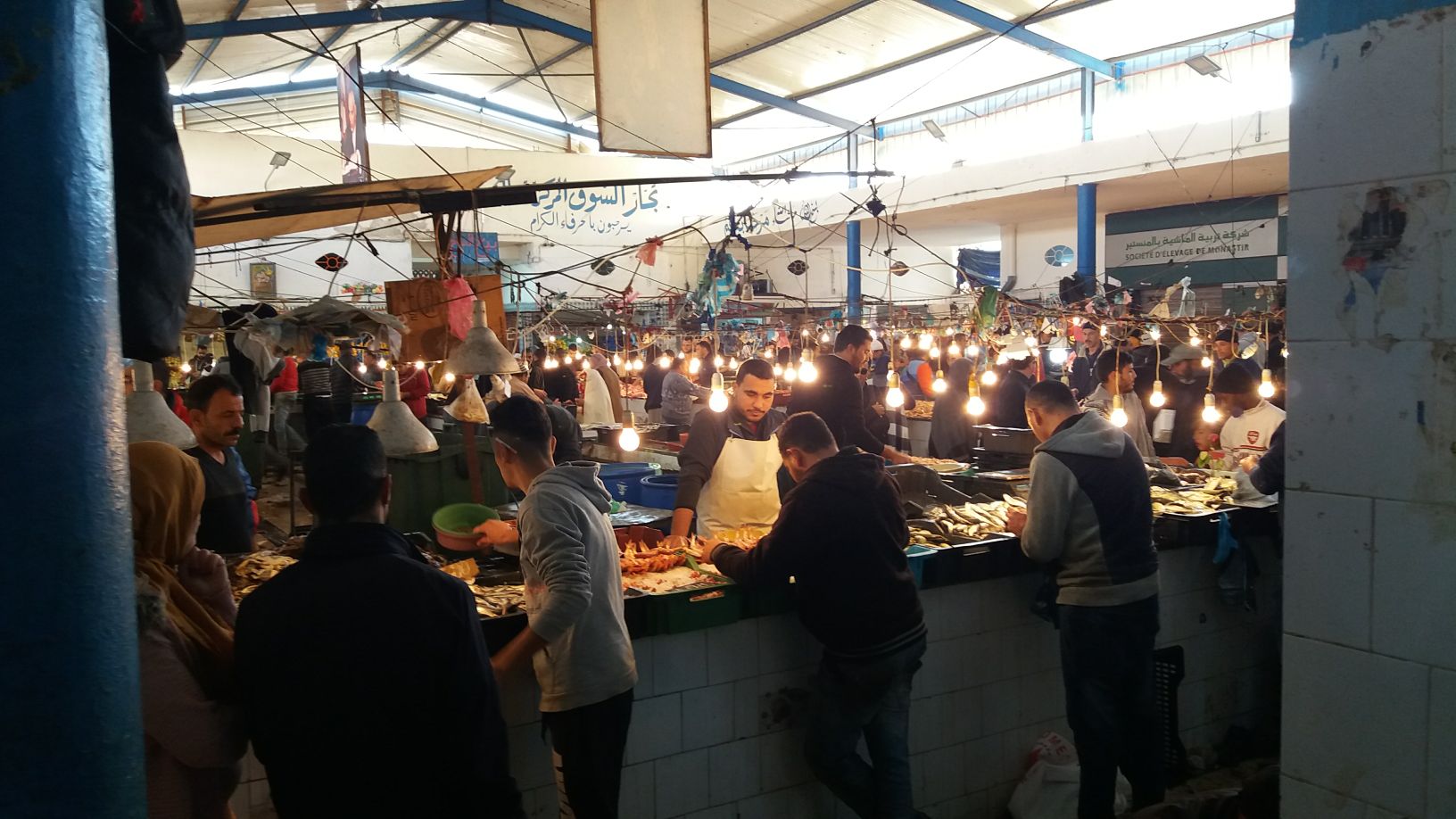 Na Medina de Monastir, onde estamos, o vai e vem é constantes e é possível perder-se entre as ruelas estreitas e as pequenas lojas que vendem artesanato, especiarias, verduras e legumes e há também supermercado, do tipo que conhecemos e um grande mercado com peixes, camarões, lulas, polvos e muito atum fresco a um preço acessível.