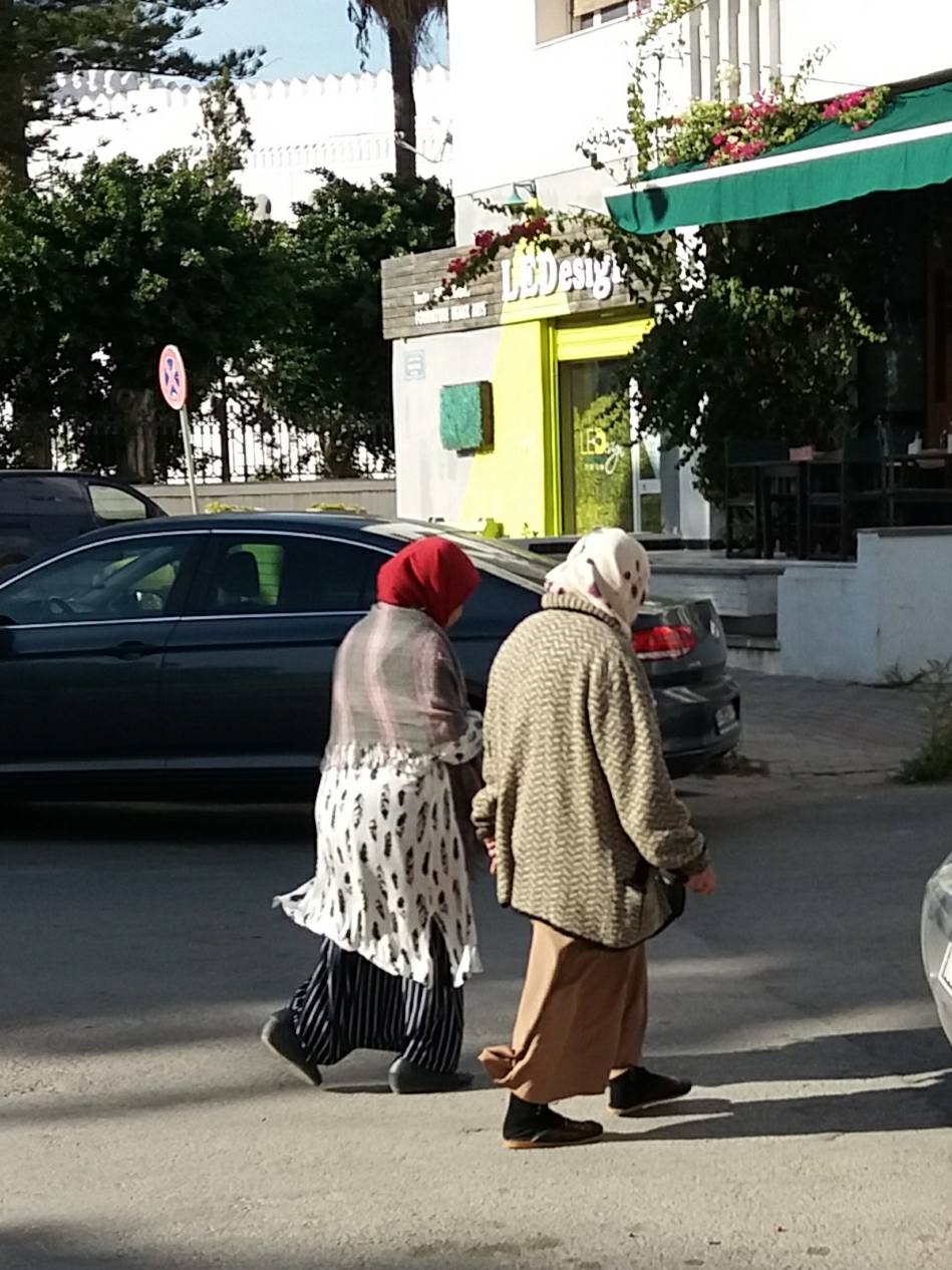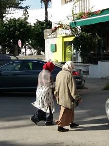 No caminho dentro da Medina passamos por homens que usam uma longa túnica branca e turbante na cabeça, outros com uma grande capa que vai até os pés e com capuz, chamada de Abaia, outros com um pequeno chapéu de cor bordo, chamado de Tarbush e outros homens vestidos à moda ocidental.
