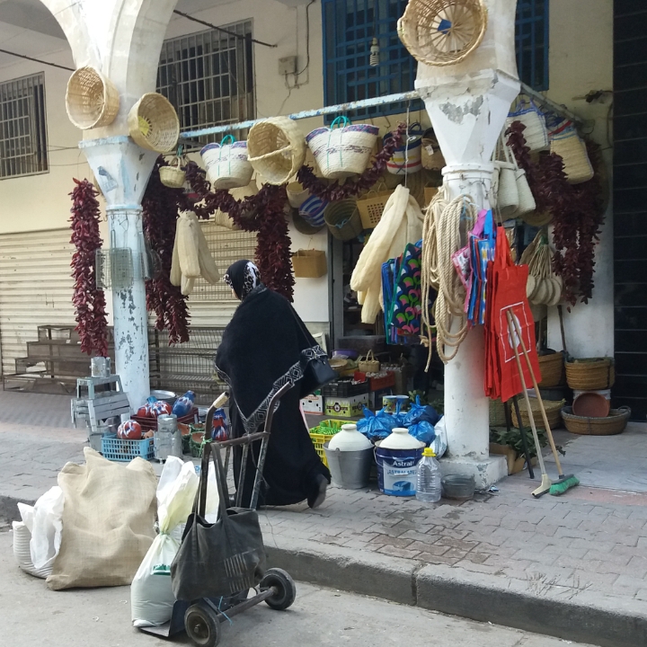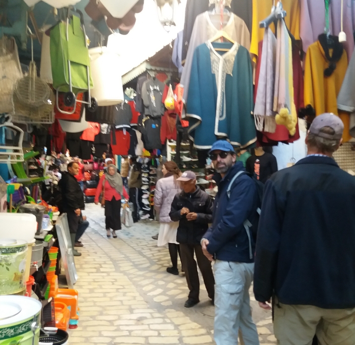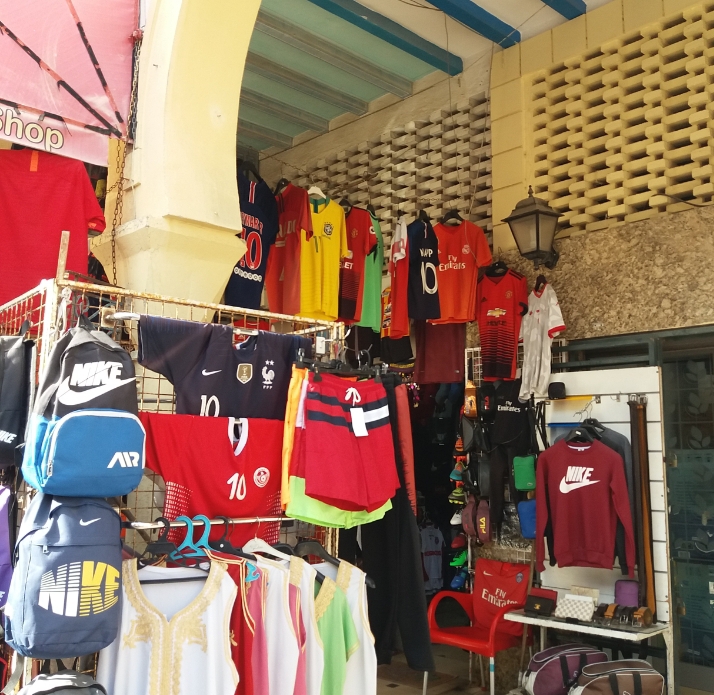 Na Medina, onde vamos às compras, há grande variedade de produtos, comidas, temperos, biscoitos e muita roupa, calçado e bolsas fake…