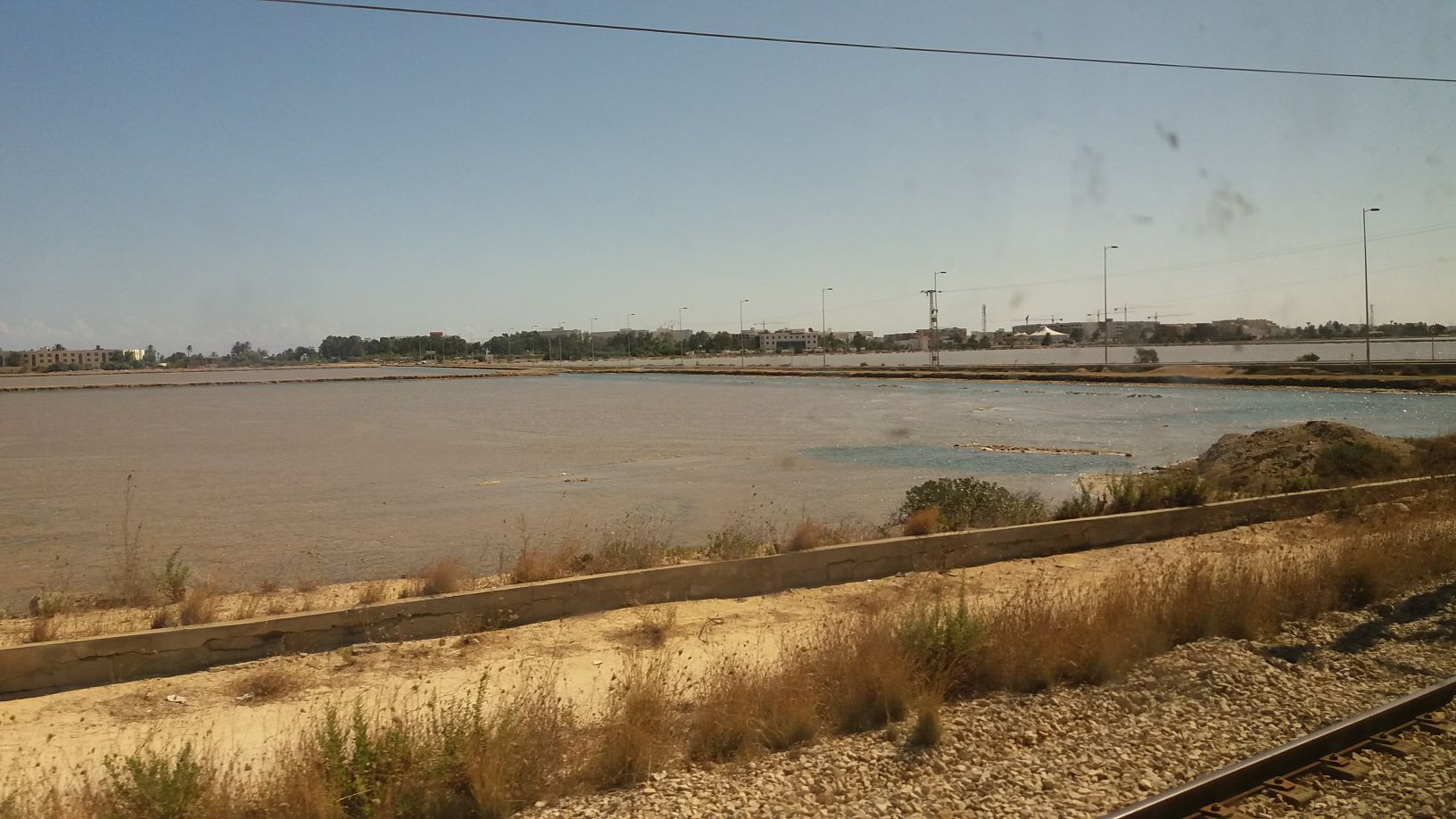 No caminho, direção norte, passamos pelo aeroporto e por diversas lagoas de produção de sal em diferentes estágios. Nelas sempre há Flamingos e a medida que forem se alimentando nas lagoas de sal sua plumagem ganhará a cor rosa, característica dos flamingos. No inverno passado vimos muitos é bem coloridos, mas os de agora ainda estão brancos. Monastir é produtora de sal assim como outras cidades da Tunísia. A materia-prima das Salinas é o mar, que contém apenas cerca de 3% de cloreto de sódio (NaCl); O trabalho a ser feito em um lago salgado consiste em evaporar grandes volumes para concentrar essa água do mar pela ação exclusiva do sol e do vento. É um longo trabalho e os salineiros cuidam de todo o processo, desde que a água do mar é bombeada para dentro dos lagos, onde percorrerá de 50 a 100 km e levando mais de 6 meses para se concentrar antes de se cristalizar em superfícies chamadas tábuas de sal. Então chega a época da colheita e como na agricultura, uma vez por ano, geralmente no outono-inverno, os salineiros recolhem esse sal que pacientemente fizeram crescer em suas bacias de cristalização, depois falando muito resumidamente…o lavam e o armazenam para distribuição. A paisagem chama a atenção pelas diferentes cores das lagoas e pela presença dos flamingos que agora já  se reproduziram e há muitos filhotes.