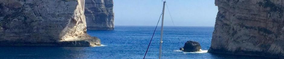 A Baía de Dwejra é conhecida como local de mergulho avançado, o cenário subaquático oferece paredes verticais, grandes rochas, pequenas cavernas e passagens subaquáticas, fissuras e ravinas. Além disso, há uma caverna a 14 metros que se estende até o interior. Não tivemos oportunidade para mergulhar, somente o Renato mergulhou quando estavamos levantando a âncora para mudar de ancoragem e ela estava presa no fundo em uma rocha… ainda bem que isso é tarefa do comandante, pois pela manhã estava frio e a água do mar gelada e lá foi ele resolver a situação!