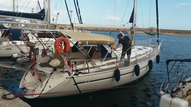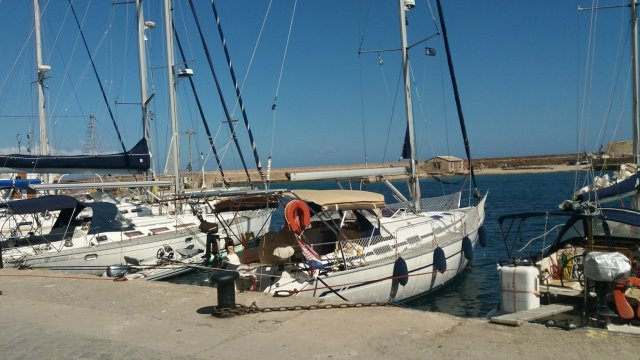 Aproveitamos uma janela de tempo bom para sair de Xania e navegar rumo ao Peloponeso, nosso último destino na Grécia. No caminho, apesar de termos previsão de tempo com rajadas de vento de 18 knots, pegamos 50 knots e nosso bimini (cobertura do cockpit) levantou estourando o ziper frontal. Deu trabalho para segurá-lo com o vento entrando, porém rapidamente o Flávio, (nosso amigo que está a bordo) colocou para dentro do salão e ficamos todos surpresos com esse vento fora da previsão. Porém, como o Renato sempre diz: “previsão é previsao”. Após navegarmos 36 milhas, paramos em Koroni para descansar e no dia seguinte aproveitamos para descer e explorar essa pequena cidade que conserva alguns sitios medievais.