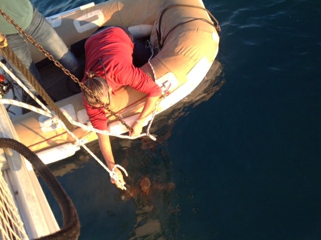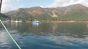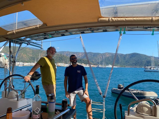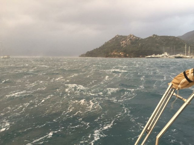 Um dia antes do vento previsto um veleiro tentou várias vezes ancorar em nosso bombordo e o Renato foi ajudá-los com as linhas de popa, era um casal turco com mais idade. Depois de ancorados, o homem veio até nosso barco e nos trouxe um pedaço de mel puro, ainda nos favos, é esse tipo de pessoas que encontramos na vida no mar.