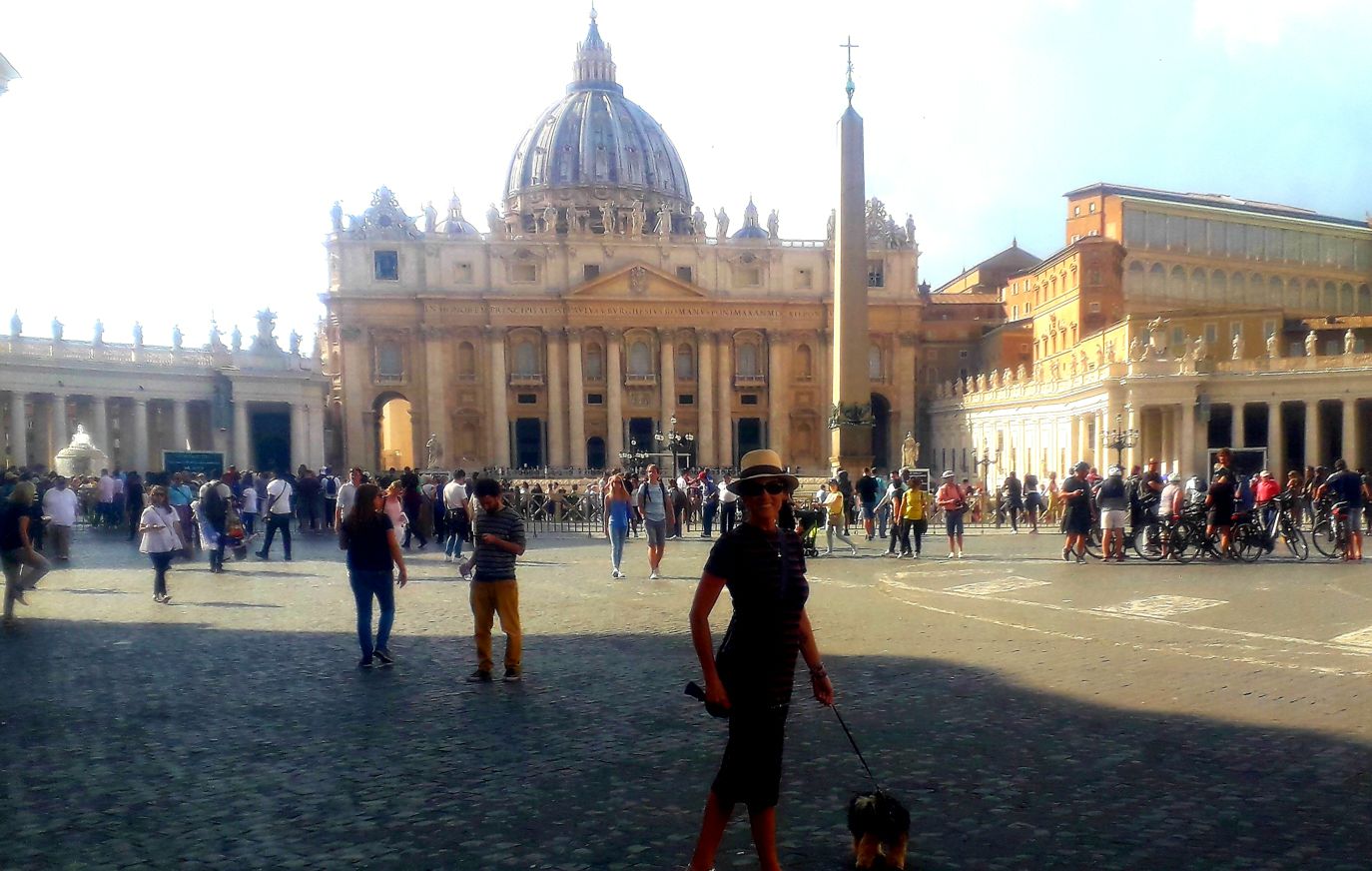 Seguimos a pé até o Vaticano, pois de carro é impossível… quando chegamos rodamos até achar um estacionamento para deixá-lo. Já era meio da tarde e a praça do Vaticano estava tranquila mas ainda com fila enorme para visitar a Basílica de São Pedro. Queríamos apenas rever o lugar que, estivemos nesta mesma data, em 2015, com a Áurea e com os amigos Simone e Herbert. Ocasião que visitamos a Basílica e o Museu do Vaticano, que abriga obras-primas como os afrescos da Capela Sistina de Michelângelo.
