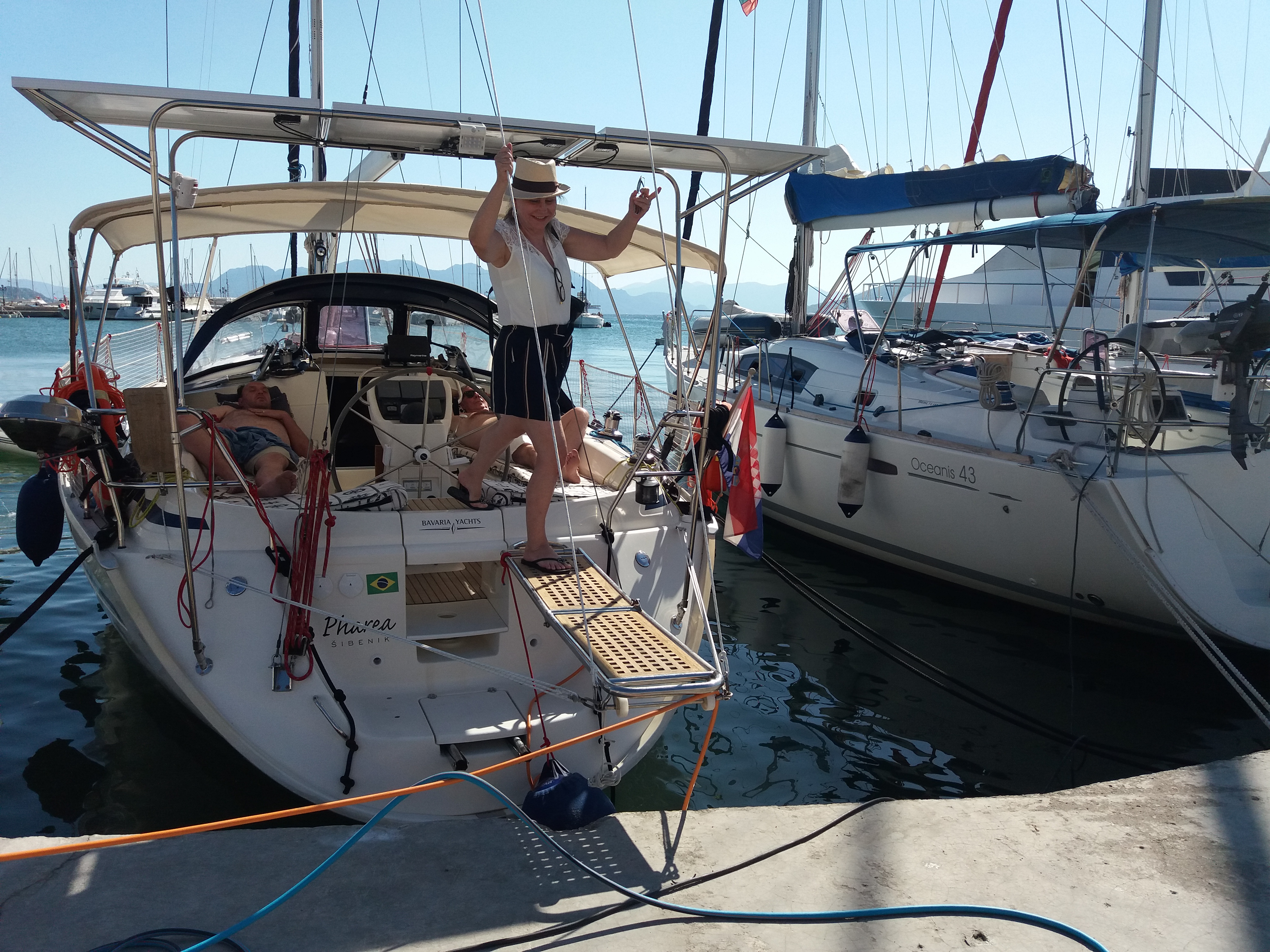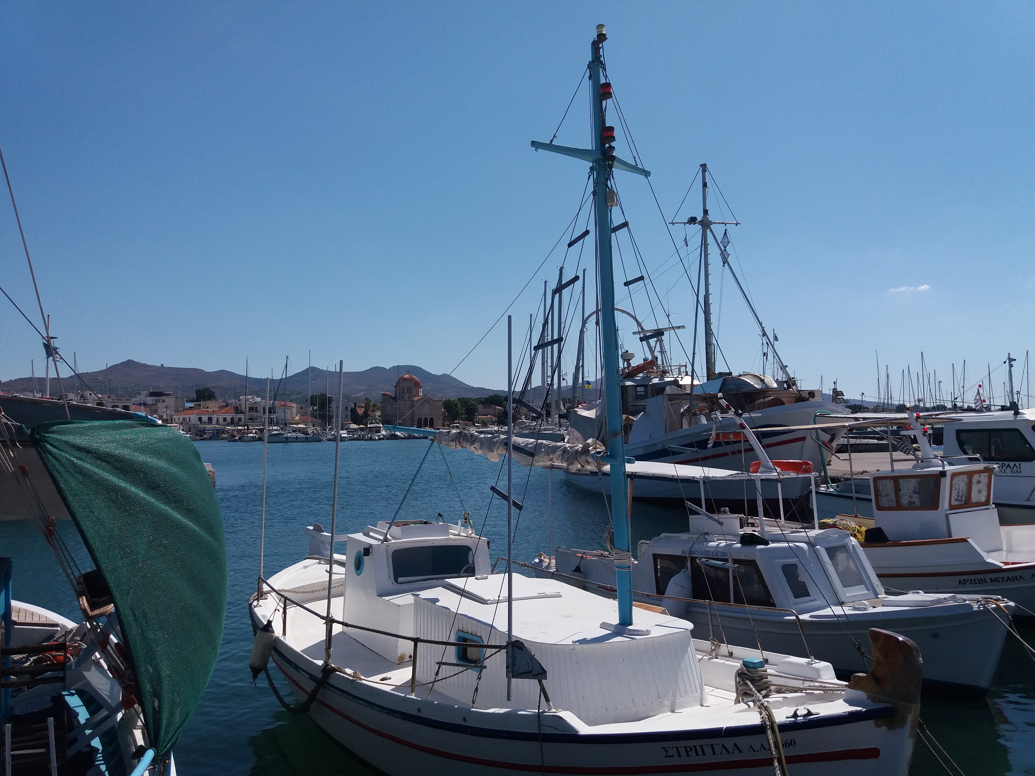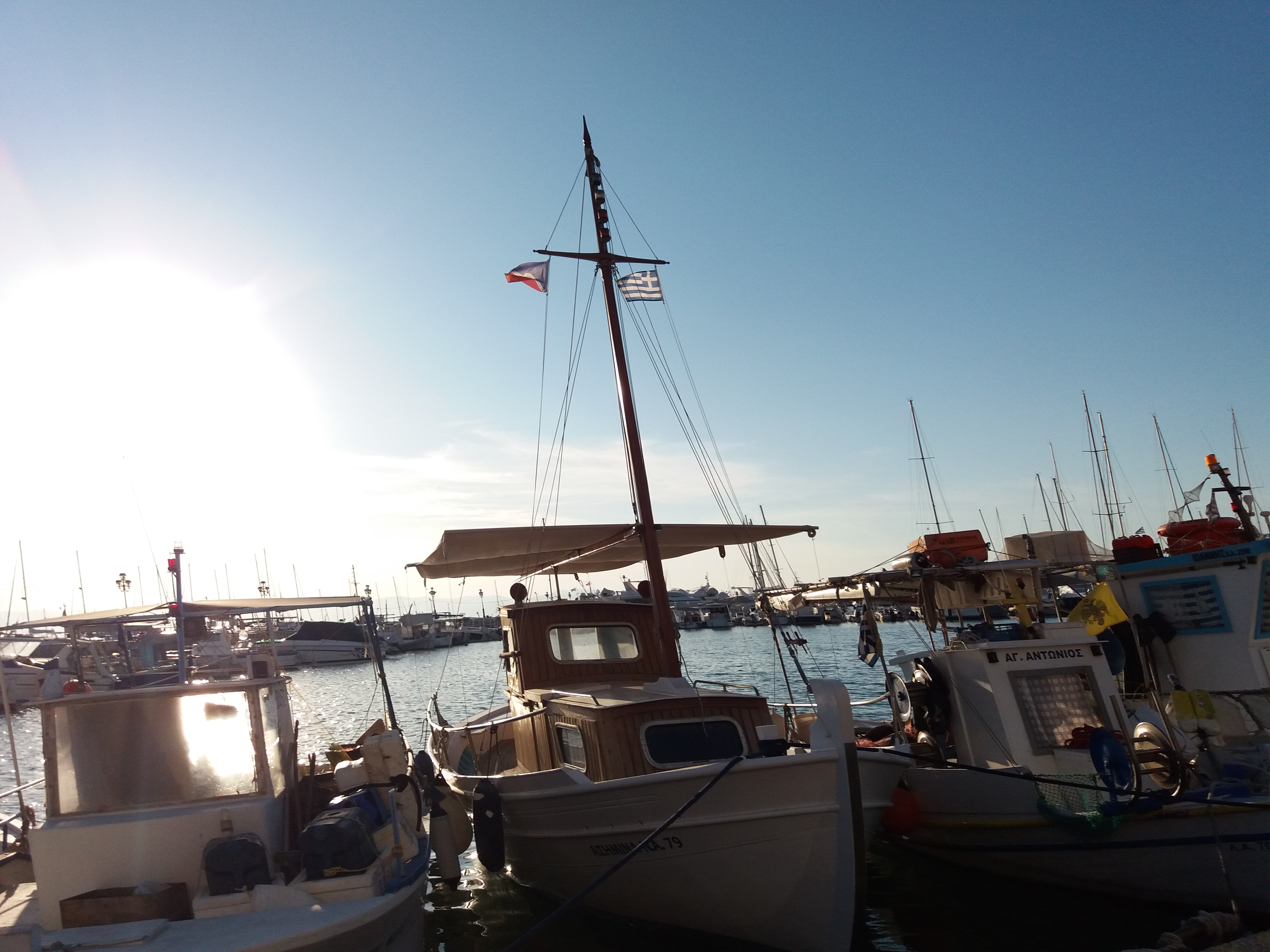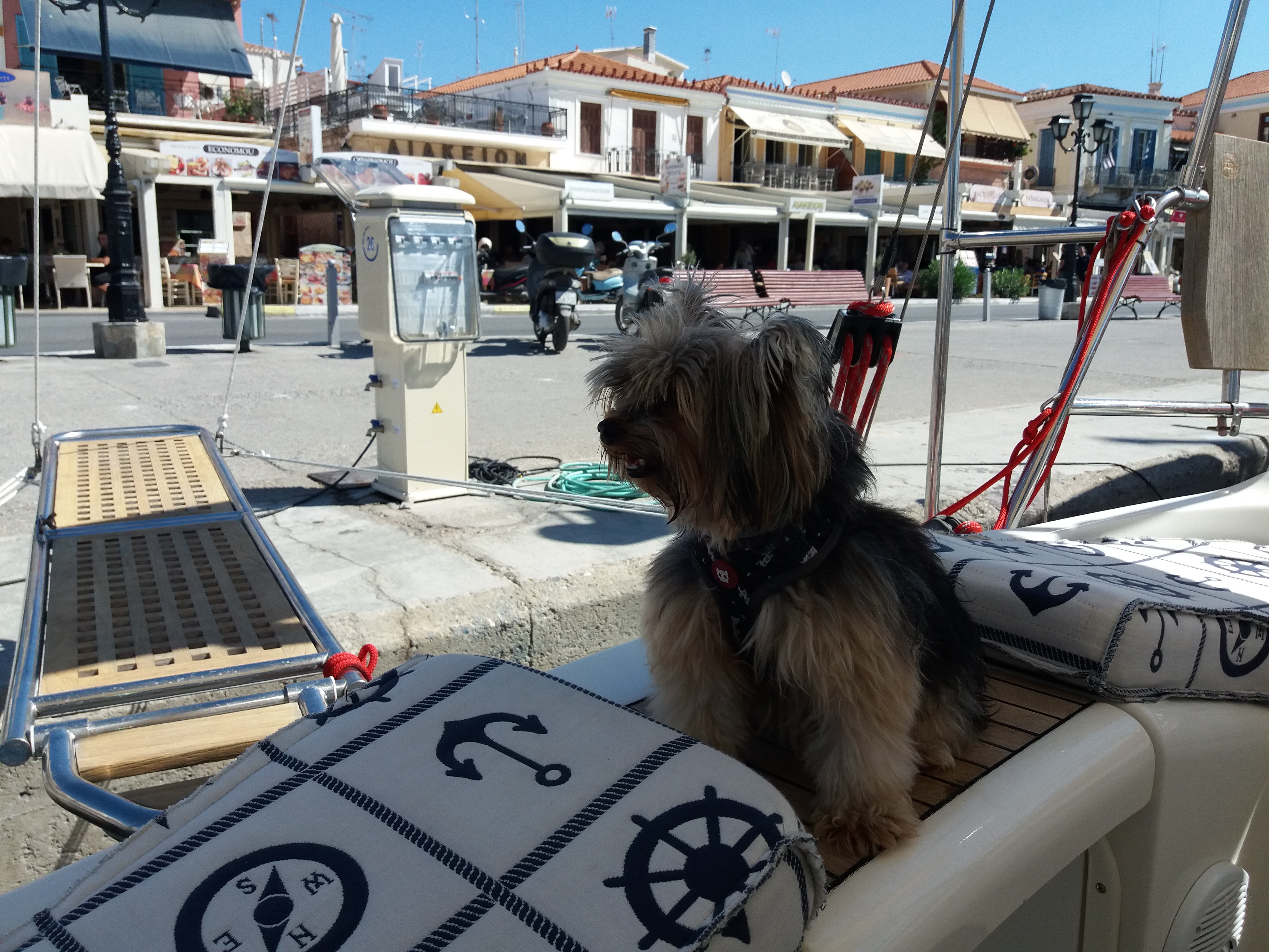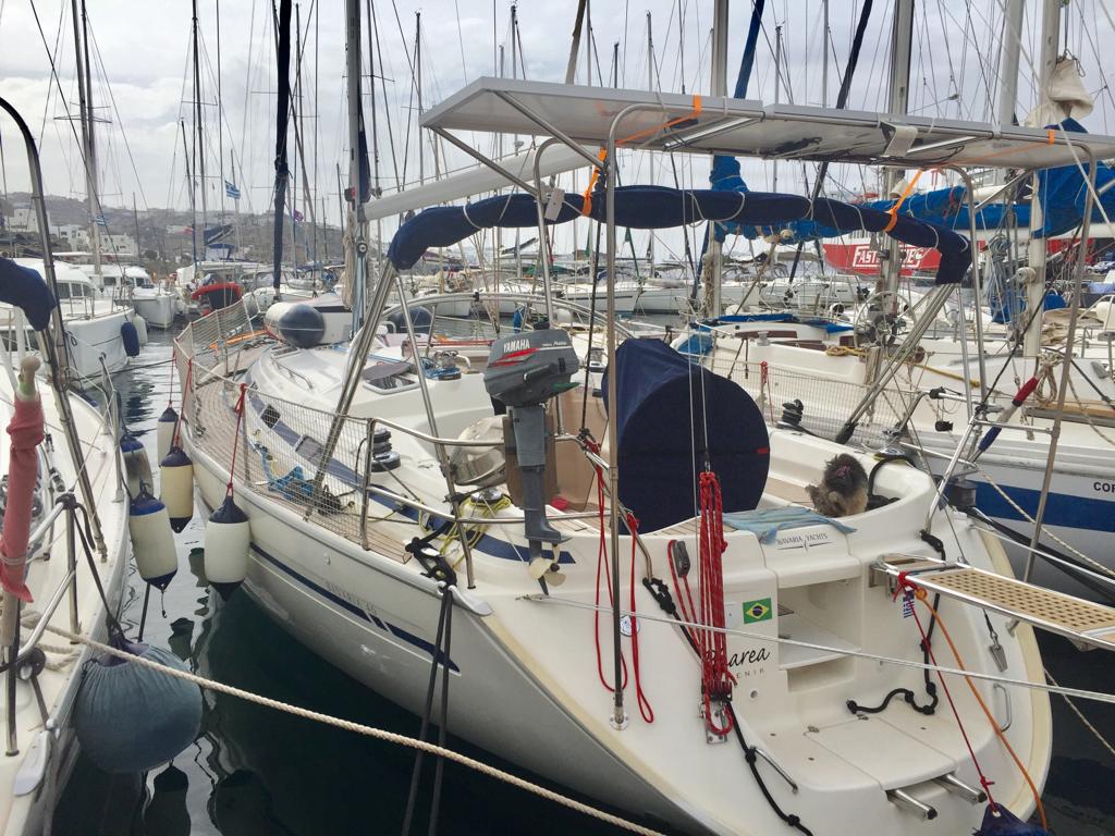Estamos no terceiro pier da marina, com outros veleiros nos dois bordos. O Renato começou a preparar o barco, pois as ilhas Cyclades, no mar Egeu, estão na rota do Zorba, como foi denominado o Ciclone. Constatamos que perdemos uma capa de defensa na noite anterior, de tanto roçar no veleiro ao lado em função do balanço continuo e depois perdemos mais duas, até que tiramos todas. Aí reparamos que muitos barcos estavam sem as capas das defensas, inclusive nosso vizinho que depois comentou que também havia perdido.