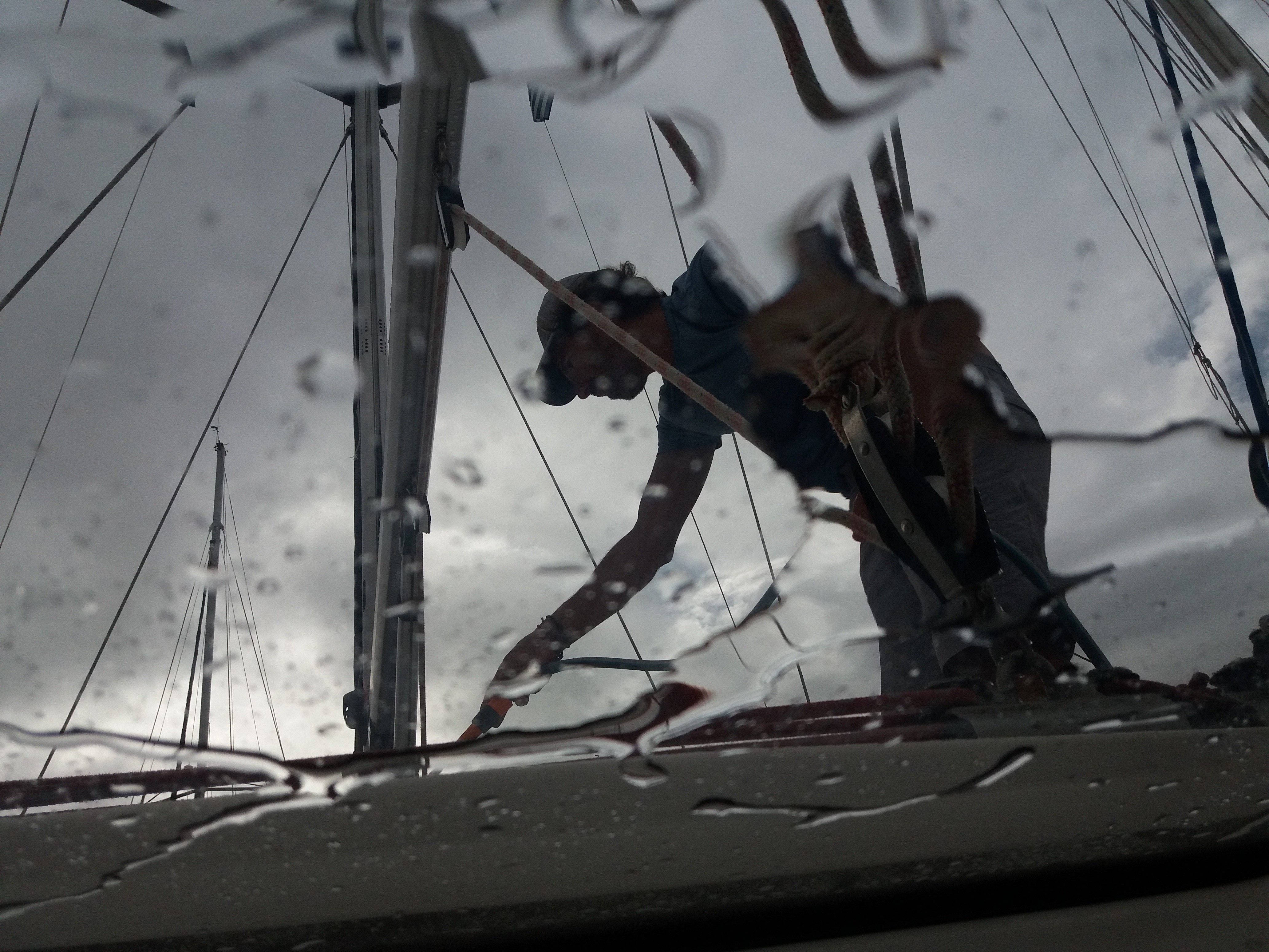 – Colocar mais um cabo reforçando a amarração da genoa;