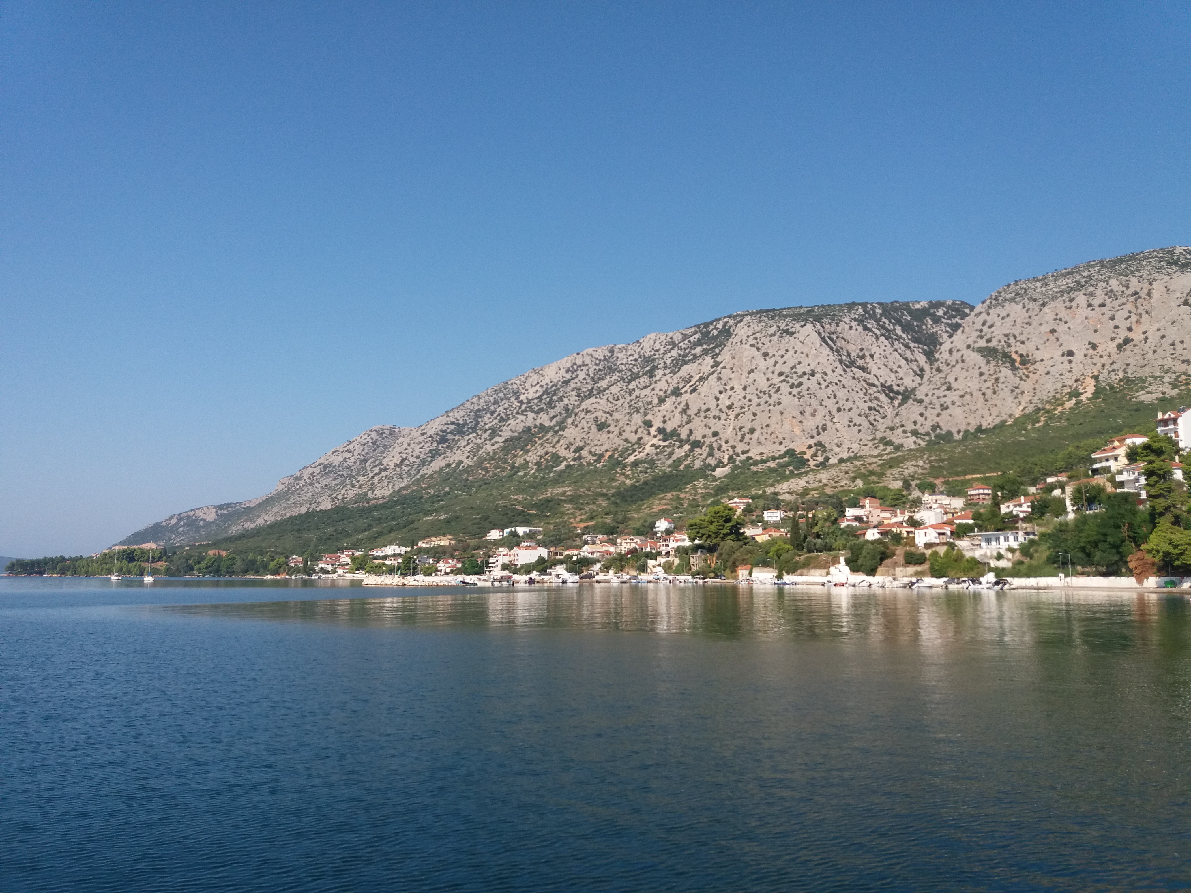 Buscávamos um lugar para uma boa noite de descanso. O Renato voltou do escritório e disse que viu vários barzinhos e restaurantes na beira da marina de Kaitos e lá fomos nós em busca da boa mesa Grega. Música ao vivo, comida gostosa e clima super agradável, dormimos como anjos kkk. Na manhã seguinte saímos às 9 horas, após o café e com muita expectativa rumamos para o Canal de Corintos.