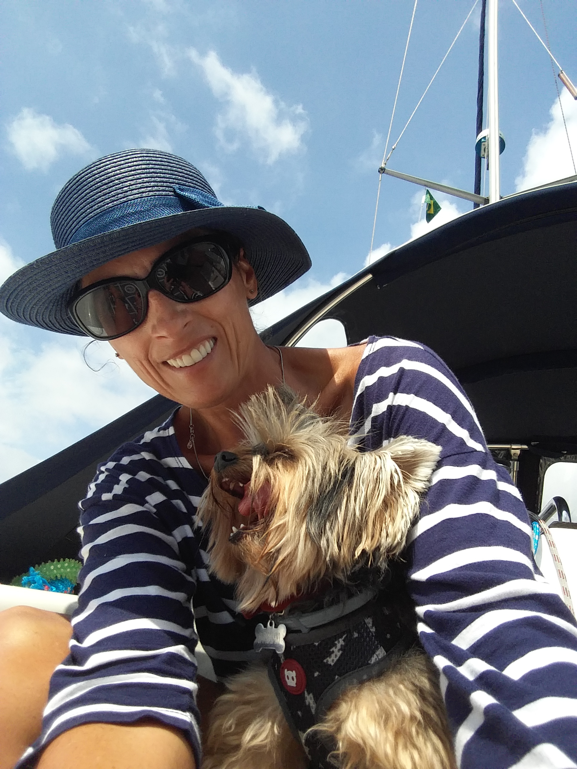 No convés, quando estamos de tro-lo-ló na proa, fizemos uma tendinha para ela se abrigar do sol. Não vimos muitos cães por aqui, existem sim muitos gatos 🐱, na rua! Nos muros, nos jardins… por todos os lugares. Os pets vendem produtos mas não vimos nada quanto a banho e tosa, assim diariamente passo a rasqueadera na Bella, limpo seus olhinhos e as vezes aparo seu pelo, é claro que tudo isso é possível…sempre em troca de um biscoitinho kkk. Namastê 🙏🏼