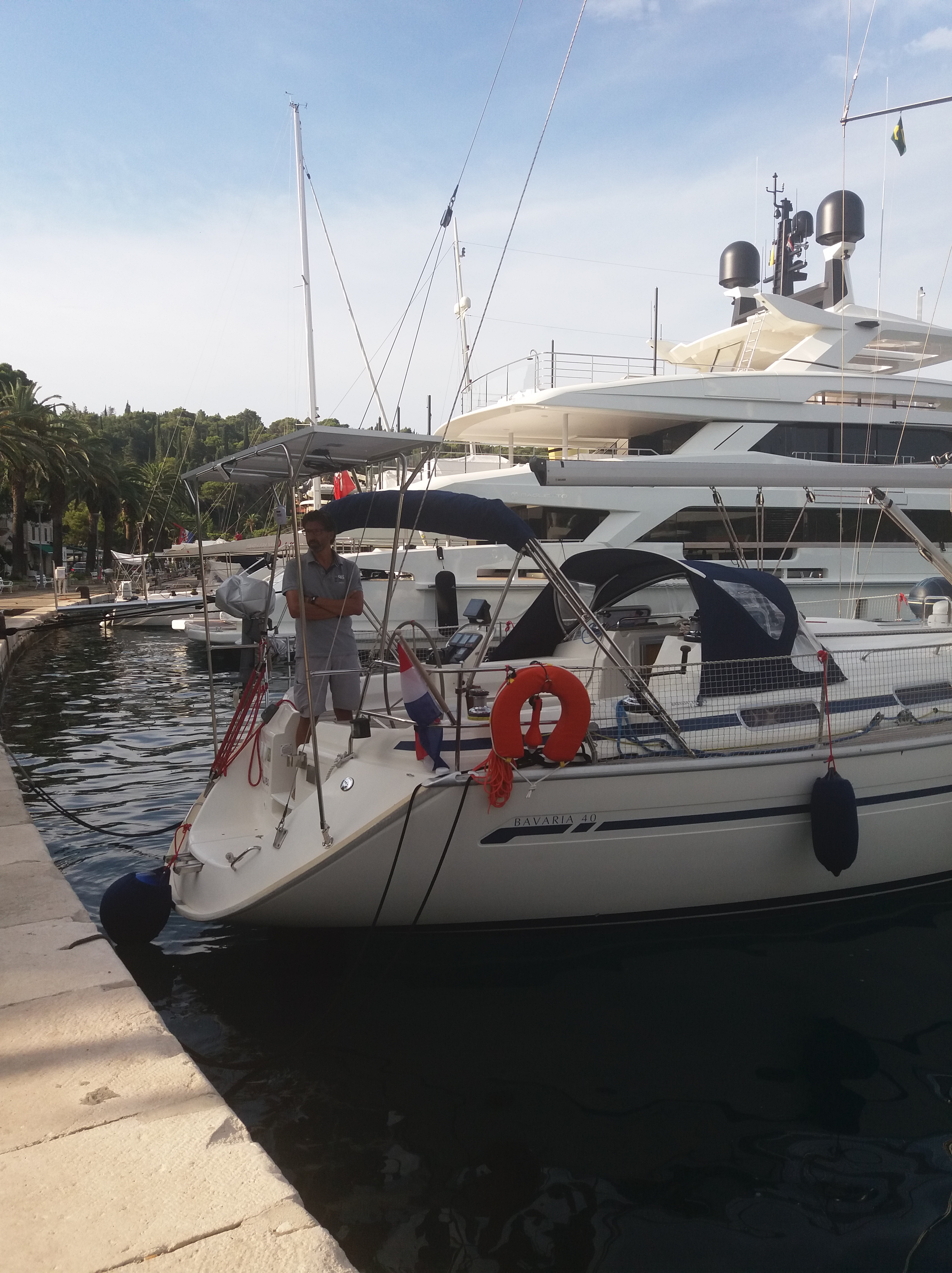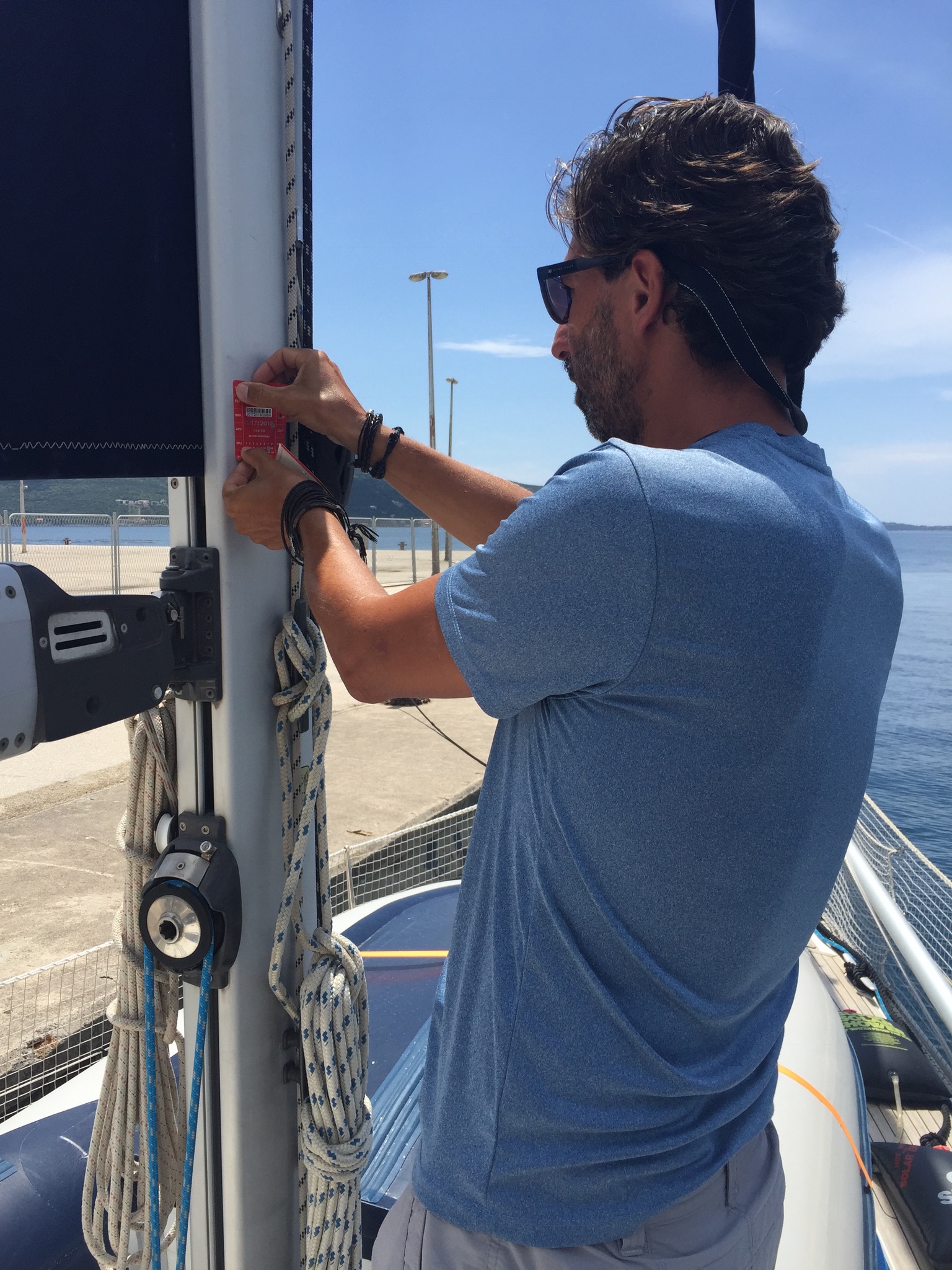 Mais tarde nos reunimos com eles e o Jordan fez um trançado formando um laço em nosso cabo do gancho de ancora, ficou uma beleza, ficamos todos no cockpit acompanhando a execução! Levamos conosco seu valioso trabalho e na quarta, dia 11, eles se foram, rumo a Croácia e deu um aperto no coração ❤️.