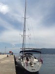 Dia 08 de julho e permanecemos ainda em Kotor aproveitando a ancoragem em frente a cidade e sem custo (42o25.412’N / 18o45.975’E). Na madrugada entrou vento e o Renato ficou no cockpit acompanhando e observando os barcos ancorados próximos. A previsão para estes dias é de entrada de um pouco de vento e assim o Comandante permanece em alerta. No dia seguinte saímos para andar e ao retornar encontramos um mimo: um quarto de uma deliciosa melancia e um livro de Nós de Marinharia, que o Jordan e a Judy gentilmente nos emprestaram.