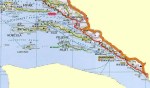Saímos da Marina as 13h do dia 13 (quarta) rumo a Cavat, onde daremos nossa saída do país. O Renato conciliou o horário de checkout na marina com a previsão do tempo. Assim saímos após o almoço, com vento sudoeste entre 12 e 15 knots, porém com mar “quadrado” com ondas grandes e desencontradas que acabou assustando a Bella em função do movimento e do barulho. Passamos pela cidade velha de Dubrovink, mas não conseguimos ver muita coisa. Ela é toda cercada com muralhas é bem maior do que imaginávamos. Um pouco à frente nosso destino de hoje Cavat. Mais uma das belas cidadezinhas daqui, com duas altas torres de igrejas bem próximas, Porto, área de circulação arborizada, restaurantes e muitos hotéis e resorts.