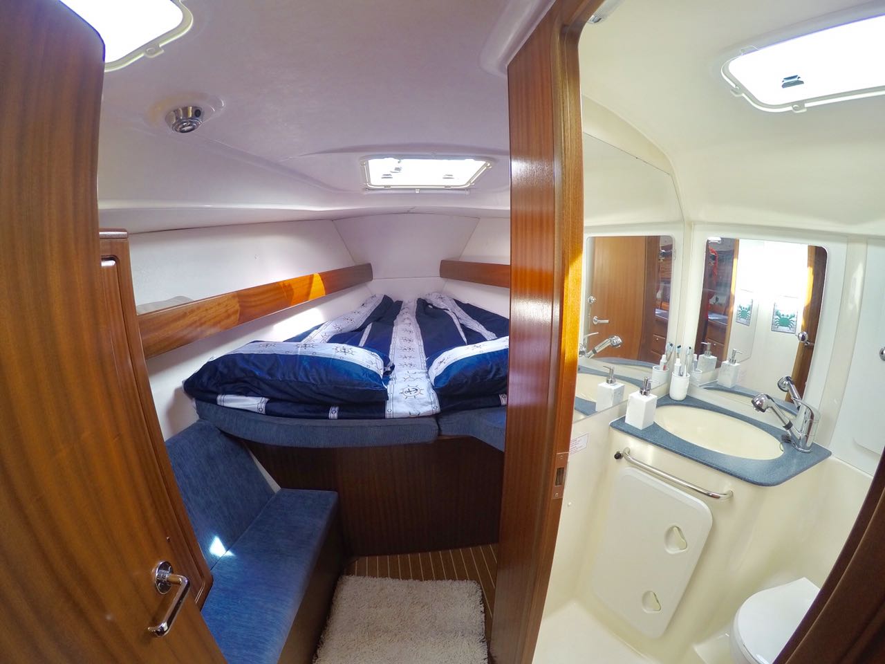 Enquanto o Renato se ocupava com tantas coisas eu providenciei a arrumação interna da Pharea, tentando deixá-la aconchegante e preparando-a para nossa vida a bordo: